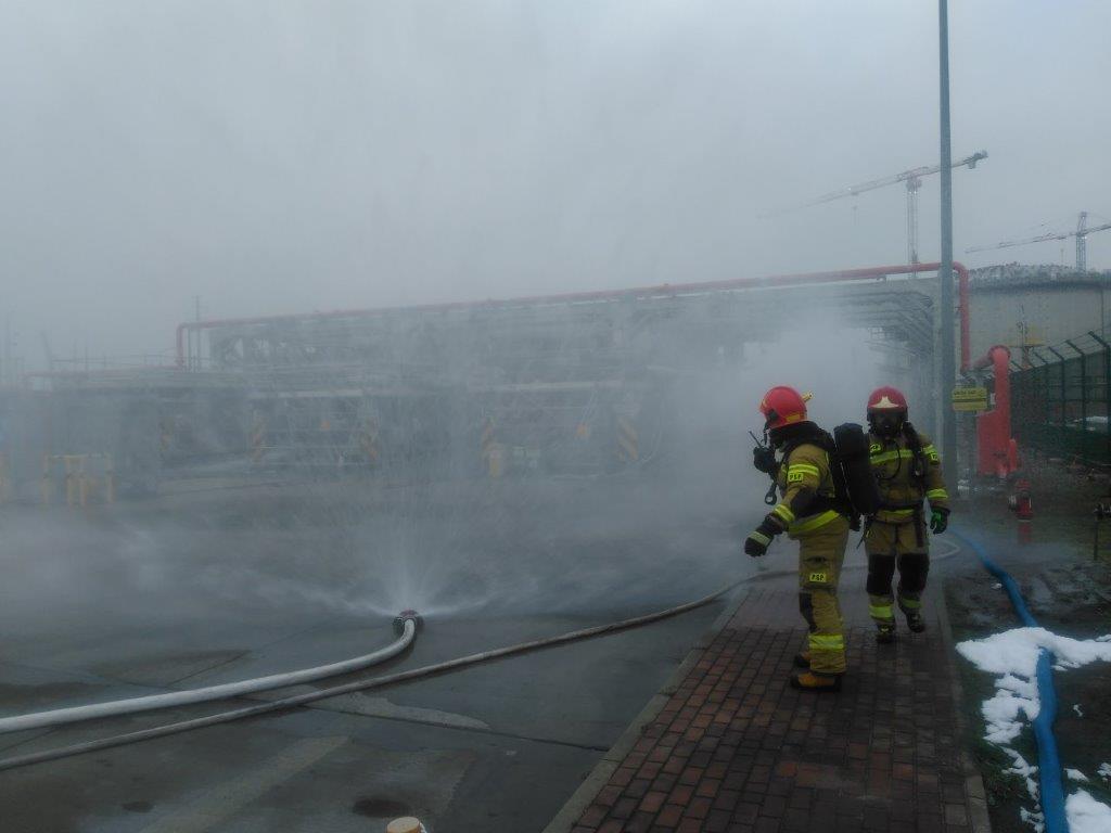 W ćwiczeniach brali udział strażacy z Jednostki Ratowniczo Gaśniczej nr 2 w Świnoujściu. Działania polegały na zabezpieczeniu miejsca zdarzenia, ograniczeniu rozprzestrzeniania się gazu we współpracy z pracownikami Terminala.