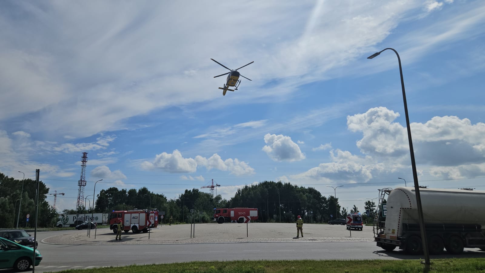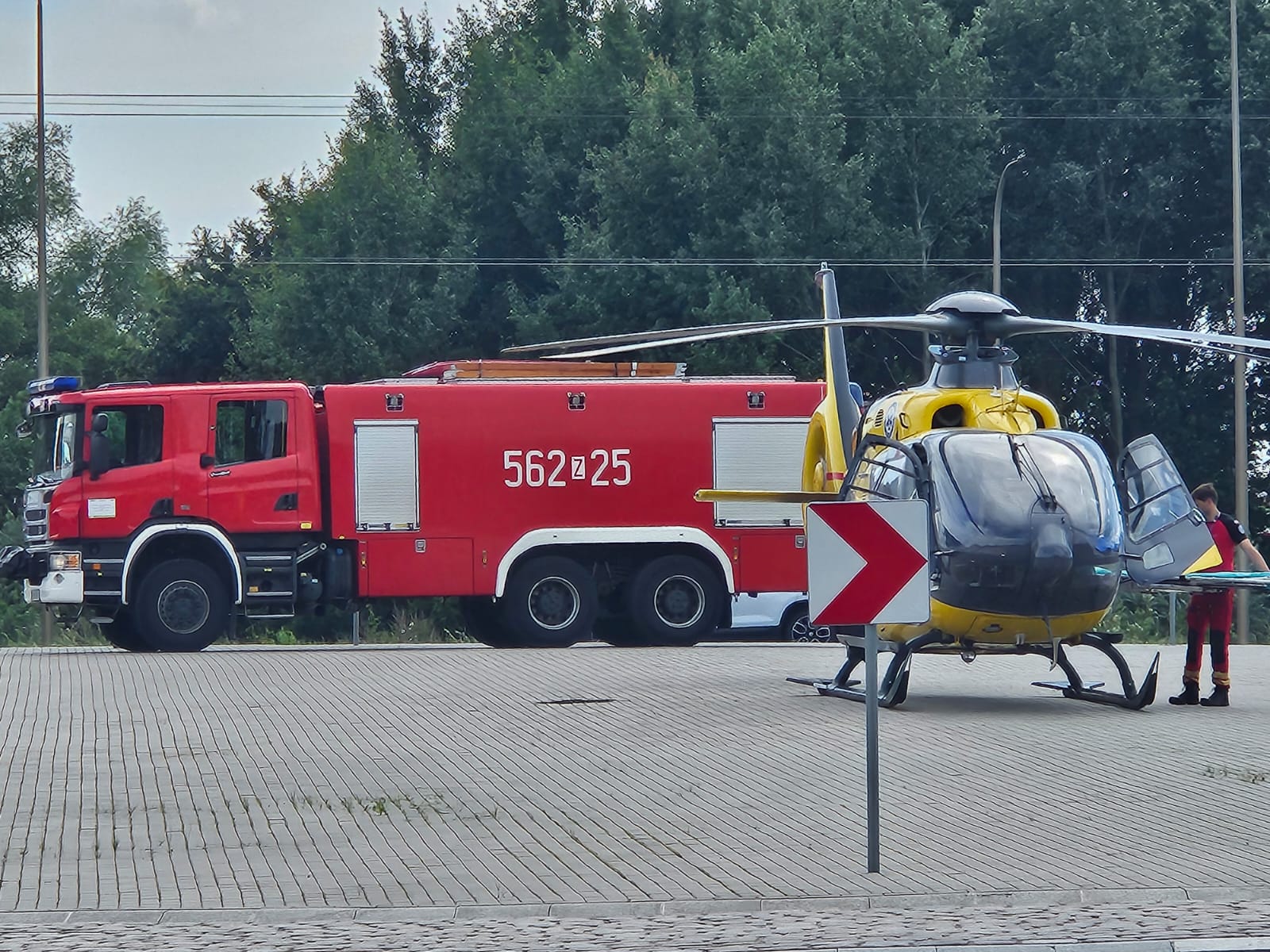 28 lipca 2025 r. strażacy ze Świnoujścia zabezpieczali lądowanie śmigłowca LPR na rondzie przy Tunelu w Świnoujściu.