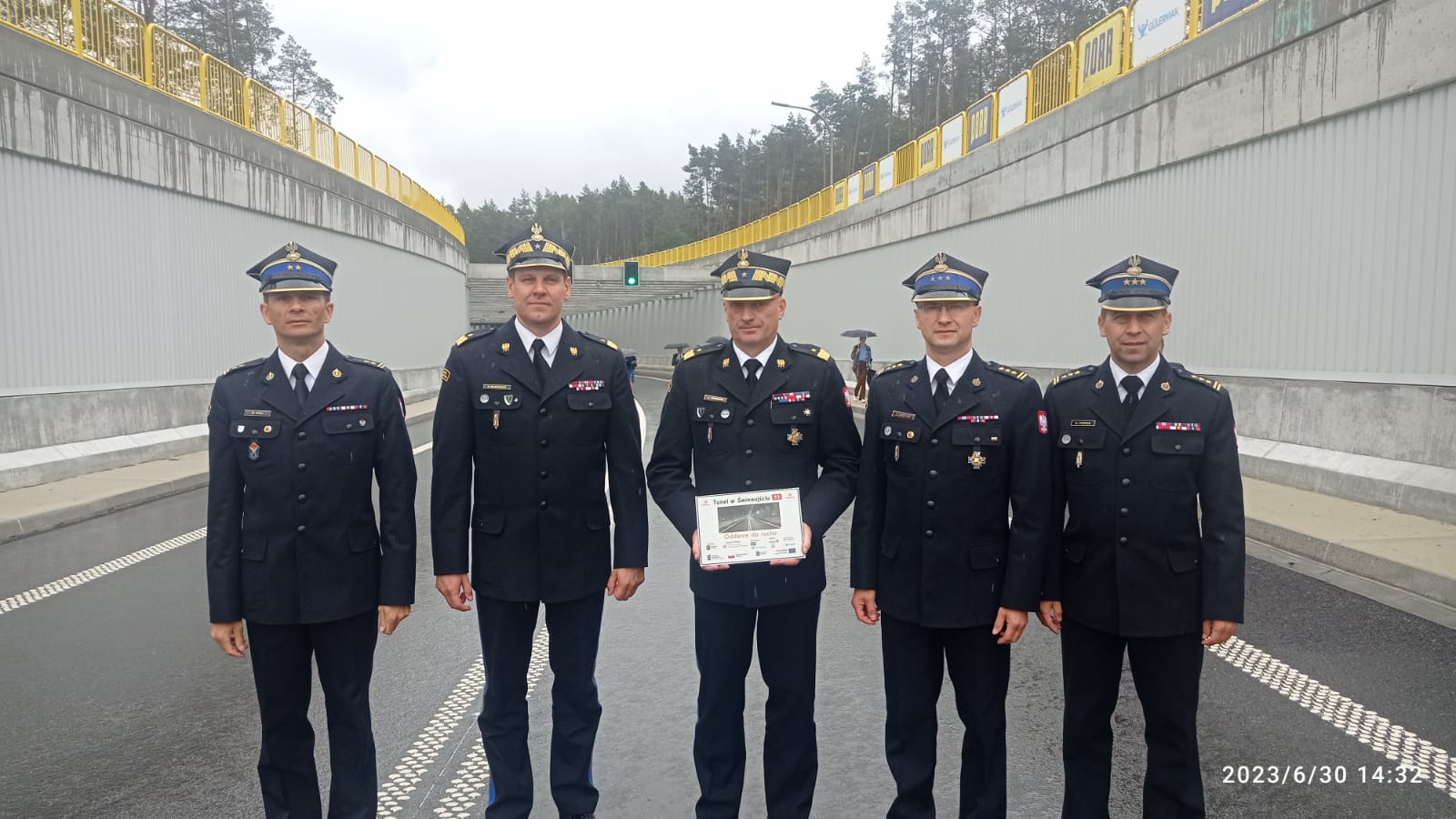Na zakończenie uroczystości Zachodniopomorski Komendant Wojewódzki PSP nadbryg. Jarosław Tomczyk otrzymał tabliczkę upamiętniającą otwarcie tunelu.