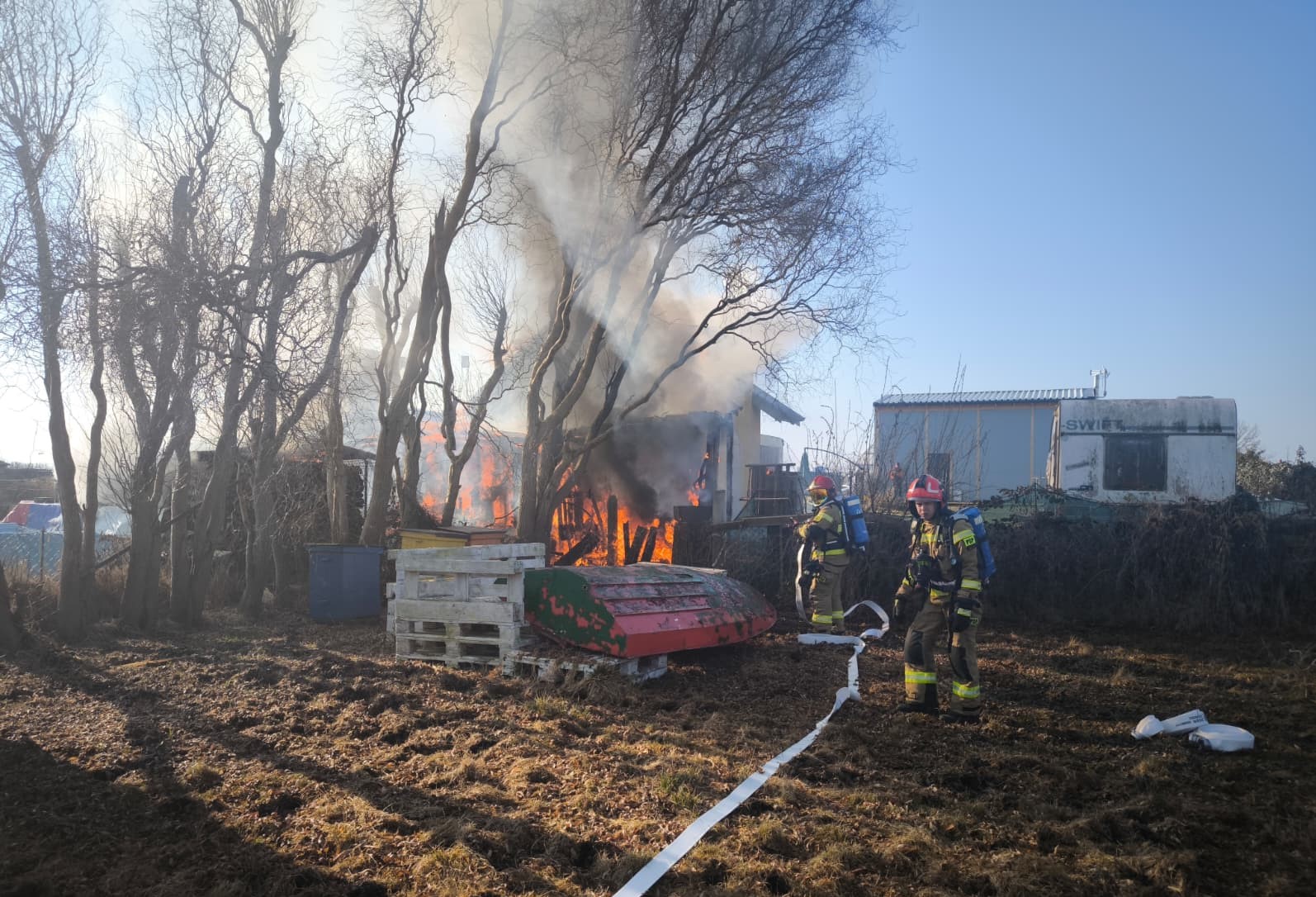 23 marca 2026 r. o godzinie 08:28 świnoujscy strażacy zostali wezwani do pożaru domku letniskowego na ROD przy ul. Krzywej w Świnoujściu.