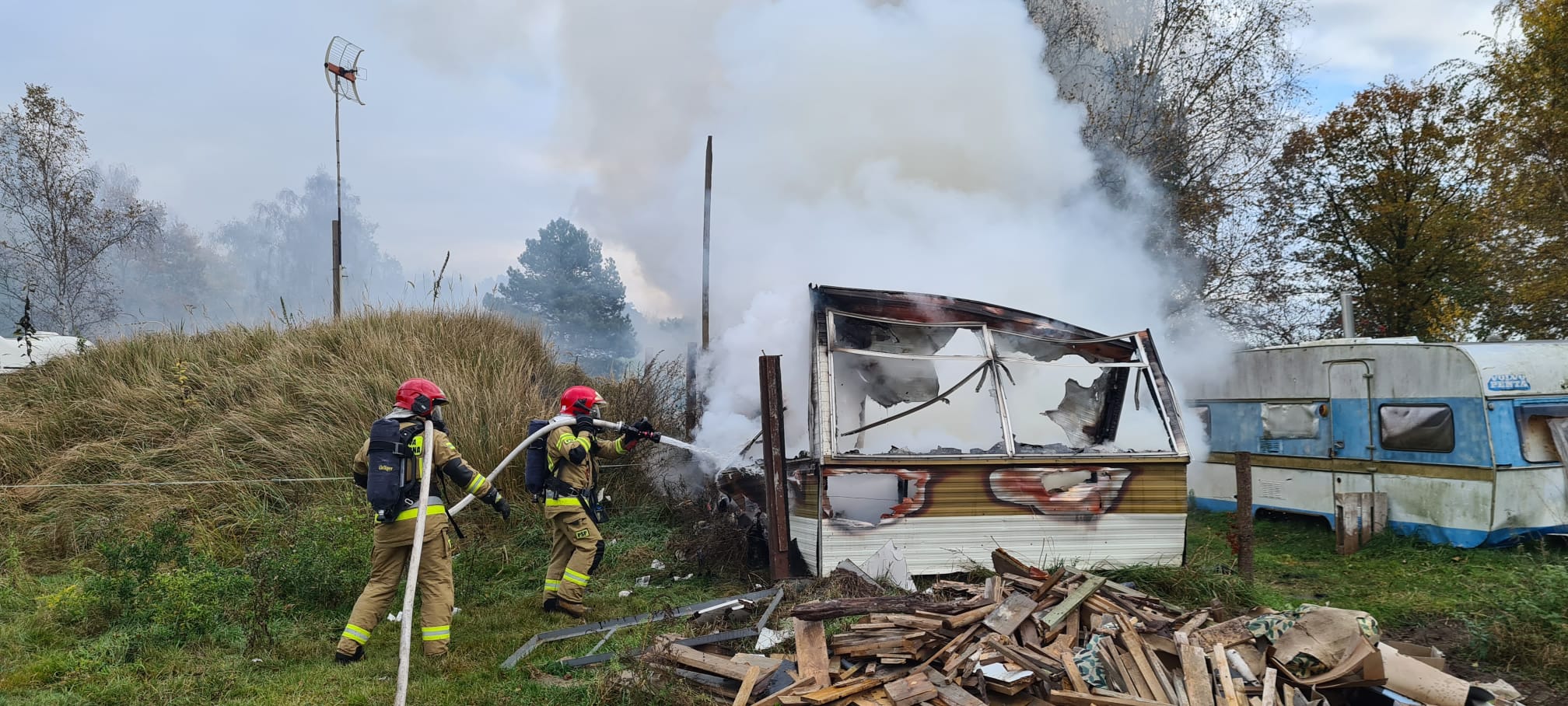 Strażacy z Jednostki Ratowniczo Gaśniczej nr 2 w Świnoujśćiu zostali wezwani do palącej się przyczepy kempingowej przy ul. Zalewowej. Działania polegały na zabezpieczeniu miejsca zdarzenia, wyniesieniu i zabezpieczeniu butli gazowej, która znajdowała się wewnątrz przyczepy oraz ugaszeniu pożaru. Nie stwierdzono osób poszkodowanych. Za pomocą kamery termowizyjnej sprawdzono pogorzelisko po czym działania zakończono. W działaniach, które trwały do godziny 11:29, brało udział 8 strażaków i 3 pojazdy pożarnicze.