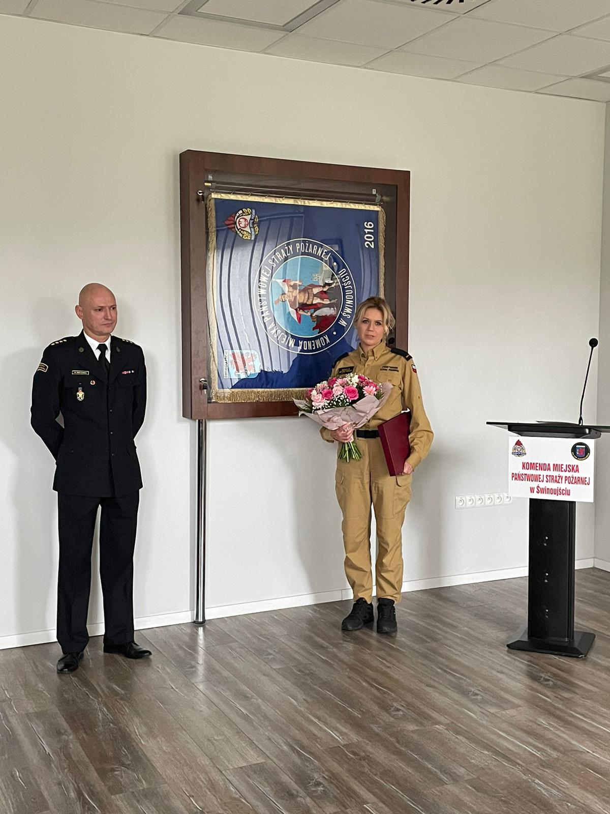 W imieniu swoim oraz całej załogi podziękowania za służbę złożył Komendant Miejski Państwowej Straży Pożarnej w Świnoujściu st. kpt. Marek Wieczorek. Przenosząca się do nadrzędnej jednostki organizacyjnej odebrała również wiele serdecznych życzeń wszelkiej pomyślności i powodzenia od kolegów i koleżanek.