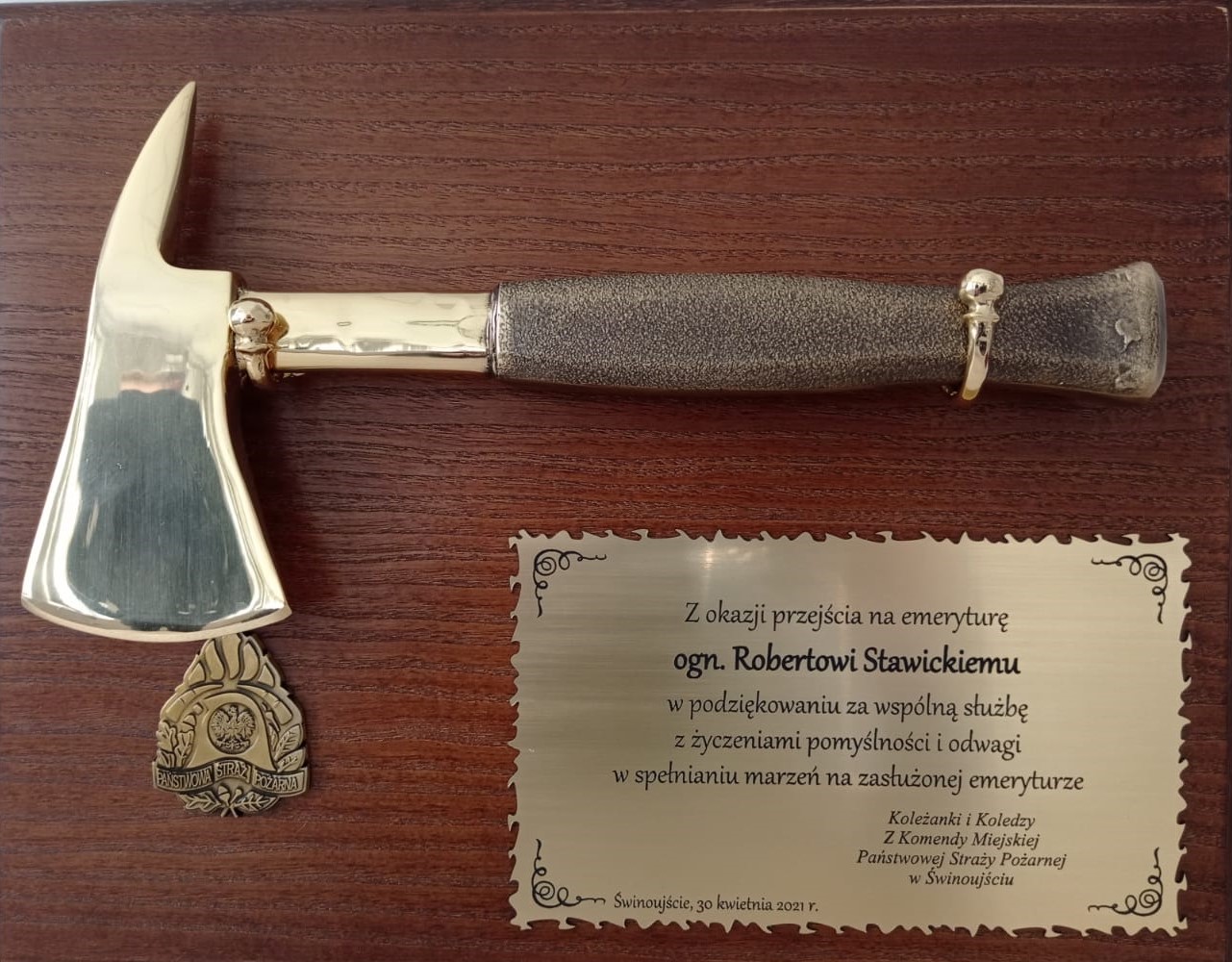 30 kwietnia 2021 roku na zaopatrzenie emerytalne przeszedł funkcjonariusz Komendy Miejskiej Państwowej Straży Pożarnej w Świnoujściu ogniomistrz Robert Stawicki. Służbę w PSP rozpoczął od stanowiska stażysty w roku 1999 i przechodził stopniowo po szczeblach kariery zawodowej. Jego zadania zawsze były związane z czynnym udziałem w działaniach ratowniczo-gaśniczych.