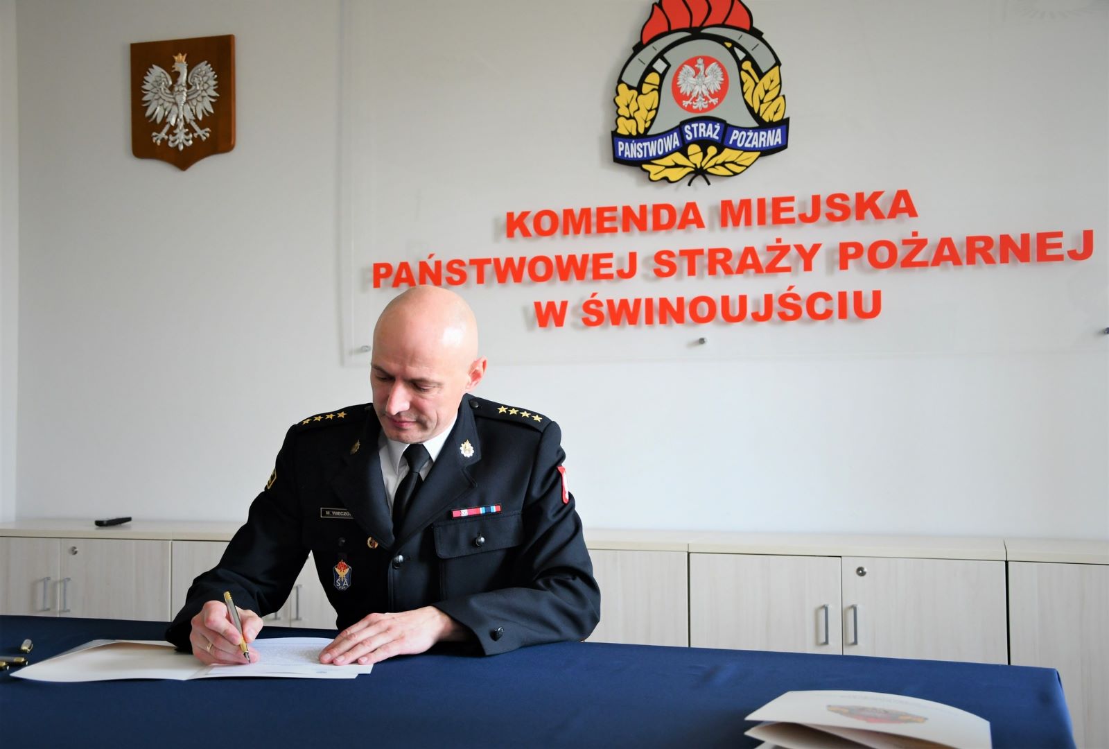19 czerwca 2023 r. w Komendzie Miejskiej PSP w Świnoujściu miało miejsce bardzo ważne wydarzenie. Komendant Miejski PSP w Świnoujściu st. kpt. Marek Wieczorek podpisał stanowisko w zakresie ochrony przeciwpożarowej w sprawie zgodności wykonania Tunelu pod Świną z projektem budowlanym.