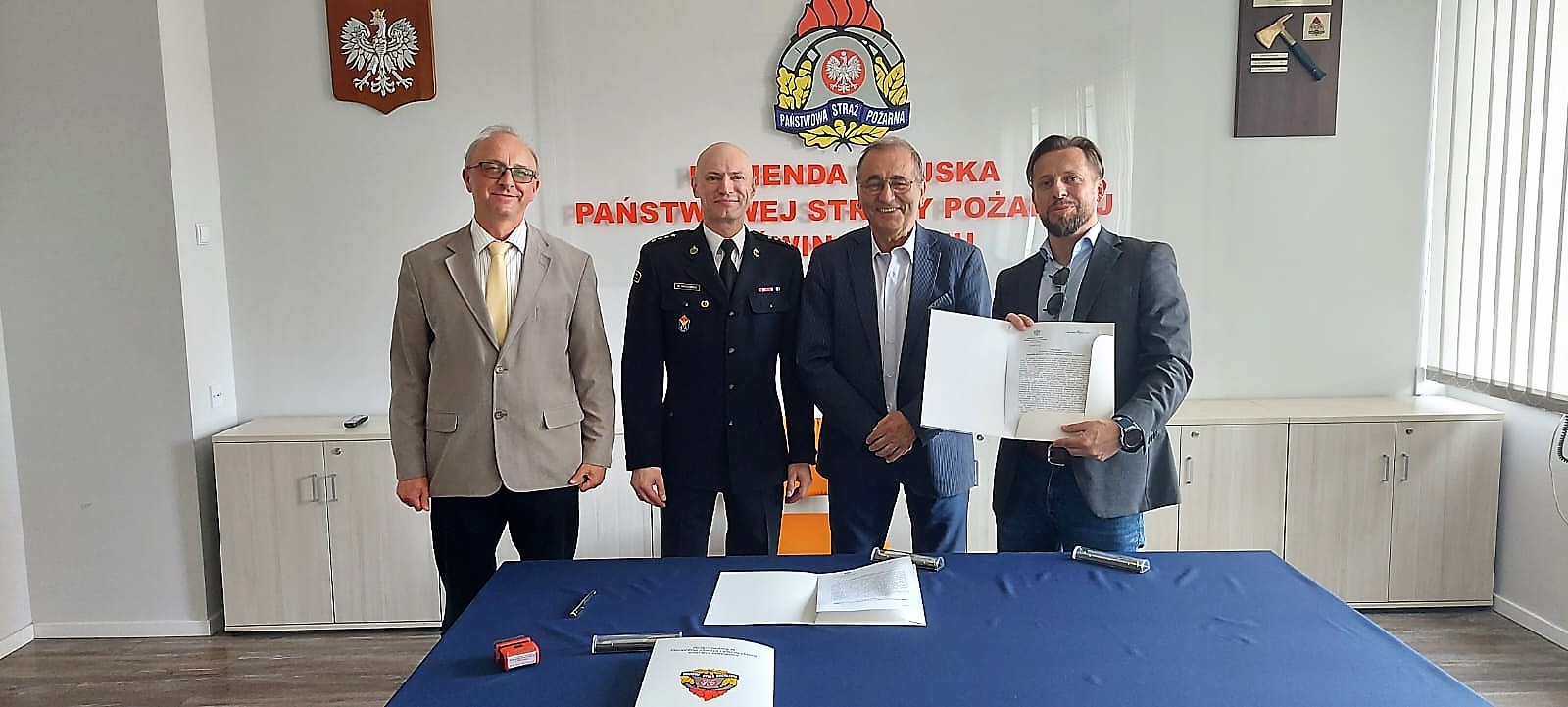 Prezydent Miasta Świnoujście oraz Dyrektor Kontraktu otrzymali od komendanta miejskiego pamiątkowe pióra wieczne, którymi został podpisany dokument.