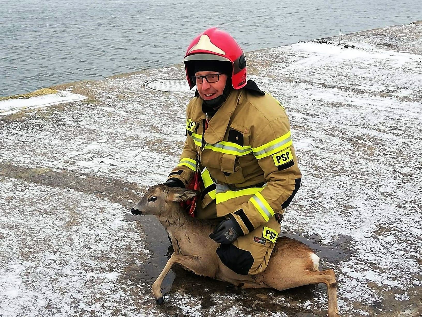 Strażacy uratowali sarnę pływającą w Basenie Bałtyckim