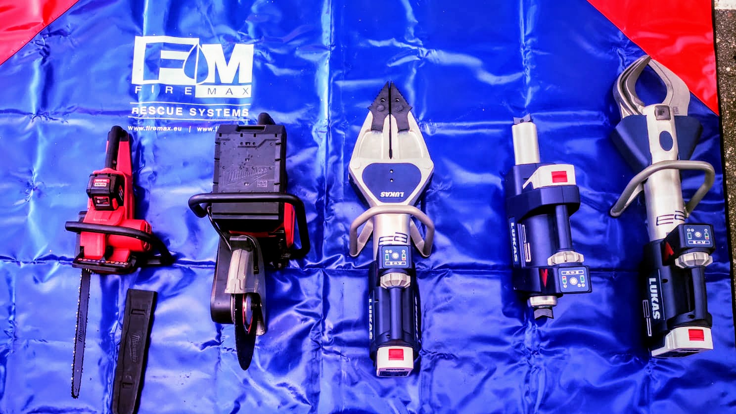 W skład zestawu hydraulicznego wchodzi: rozpieracz ramieniowy, nożyce hydrauliczne oraz dwa rozpieracze kolumnowe.