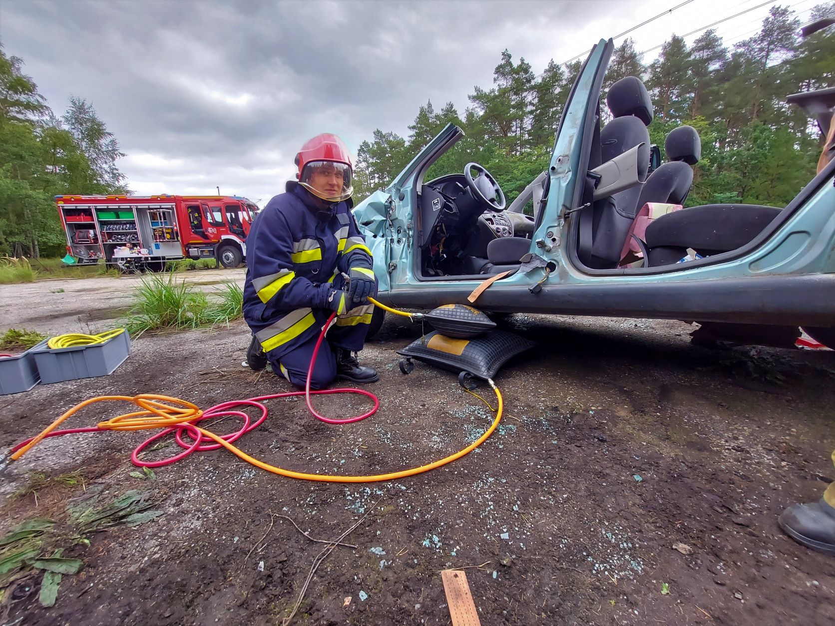 Dzięki współpracy z Komendą Powiatową PSP Kamieniu Pomorskim w szkoleniu uczestniczył zastęp z Posterunku PSP Międzyzdroje, którego funkcjonariusze przekazali niezbędną wiedzę w formie praktycznej podczas działań w zakresie ratownictwa technicznego. Gospodarzem tych zajęć była jednostka OSP Ładzin.