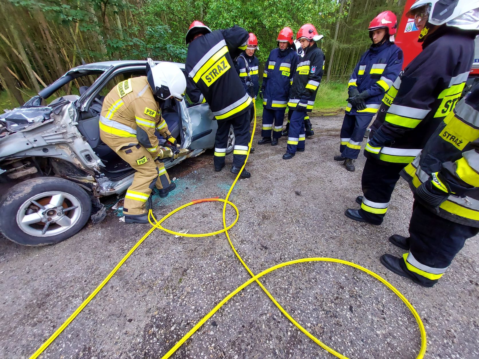 Uczestnikami szkolenia są druhowie z powiatu świnoujskiego oraz kamieńskiego, a obecnie prowadzone są zajęcia praktyczne zgodnie z określonymi blokami tematycznymi w programie szkolenia. W ubiegły weekend prowadzono zajęcia w zakresie organizacji akcji ratownictwa technicznego na szlakach komunikacyjnych, obsługi ratowniczych zestawów hydraulicznych i pneumatycznych, metod uwalniania osób poszkodowanych z pojazdów, udzielania pierwszej pomocy oraz taktyki zwalczania pożarów wewnętrznych i zewnętrznych.