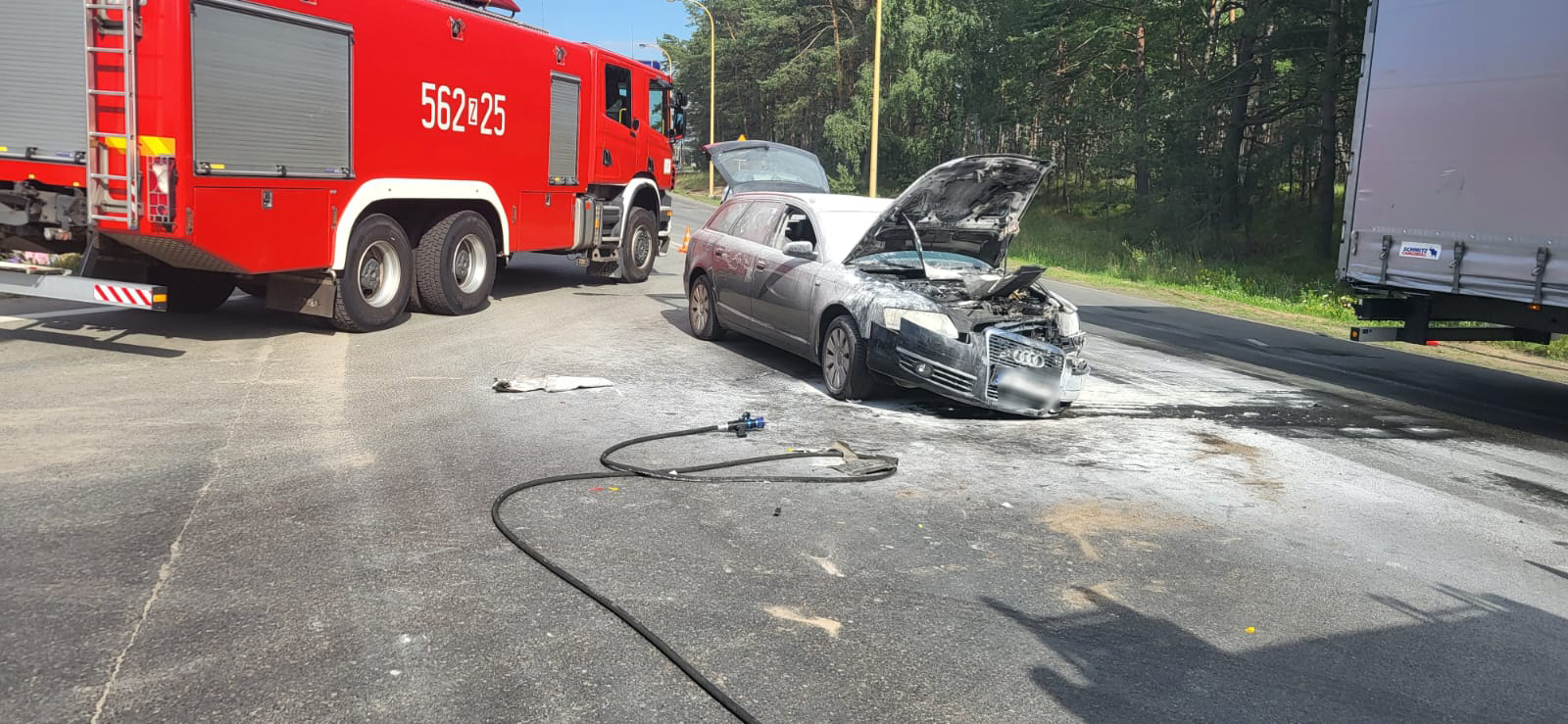 Na miejscu strażacy zastali dwa auta osobowe po zderzeniu. Pojazdami podróżowało w sumie 5 osób, które opuściły pojazdy o własnych siłach. W wyniku zderzenia przód jednego samochodu został objęty pożarem, który został ugaszony przed przybyciem służb na miejsce.