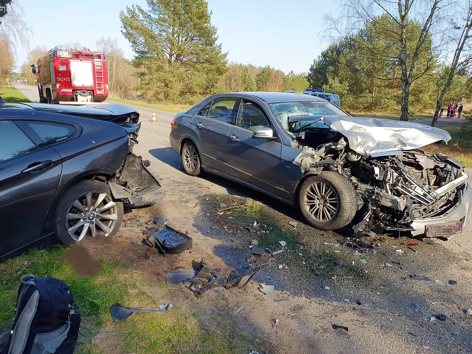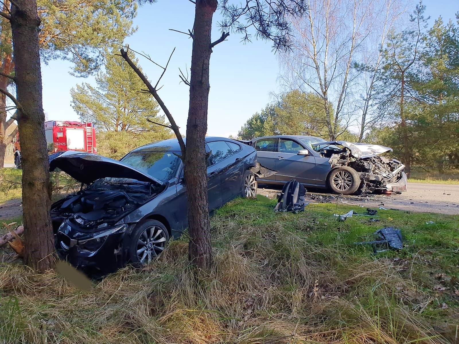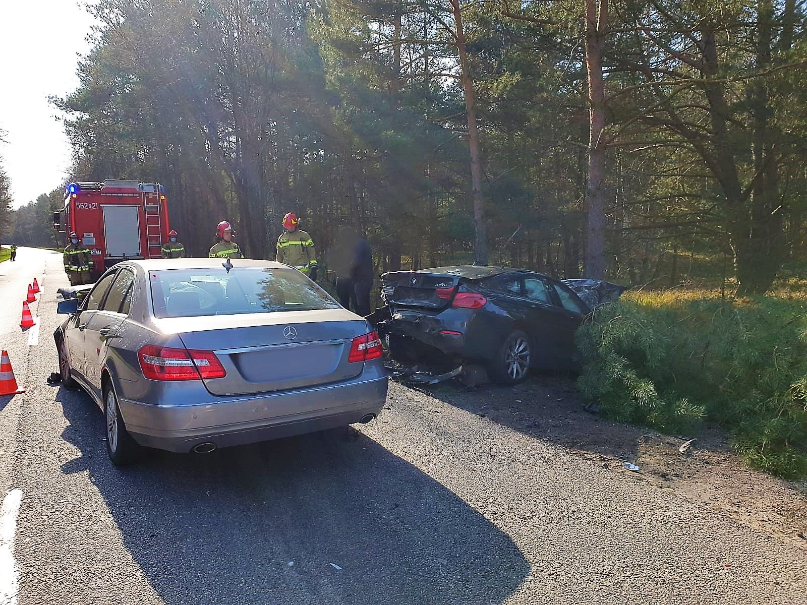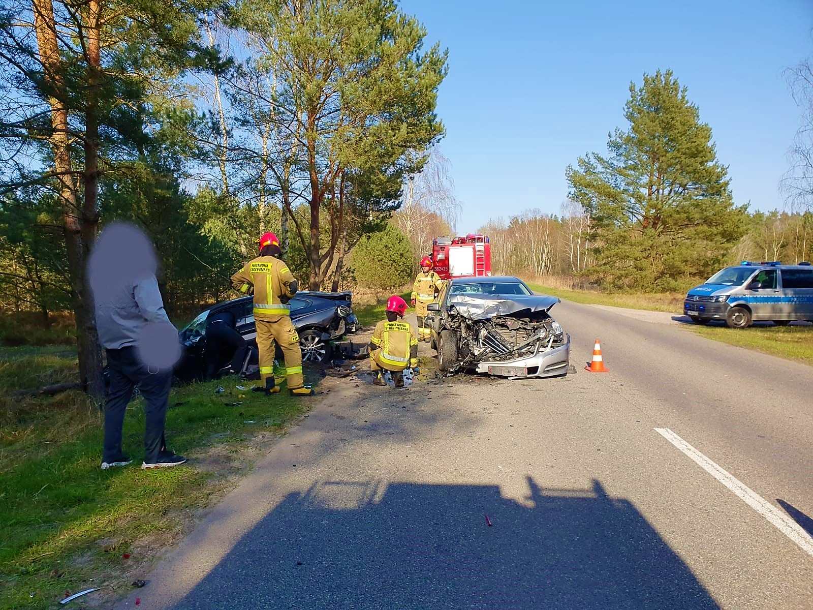 Na miejsce zostały zadysponowane dwa zastępy z JRG 2 Świnoujście. Po przybyciu na miejsce zdarzenie strażacy zabezpieczyli teren akcji. Ustalono, że doszło do zderzenia dwóch pojazdów osobowych, które uczestnicy opuścili o własnych siłach i nie zgłaszali potrzeby udzielenia pomocy medycznej. Ratownicy odłączyli akumulatory w pojazdach. Ruch w kierunku przeprawy promowej został zablokowany. W trakcie działań uzyskano informację o trzecim uczestniku zdarzenia, który oddalił się w kierunku pobliskiego lasu. Ratownicy przeszukali teren w rejonie, w którym mógł on się znajdować, nie znaleziono go. Na tym działania PSP zostały zakończone.