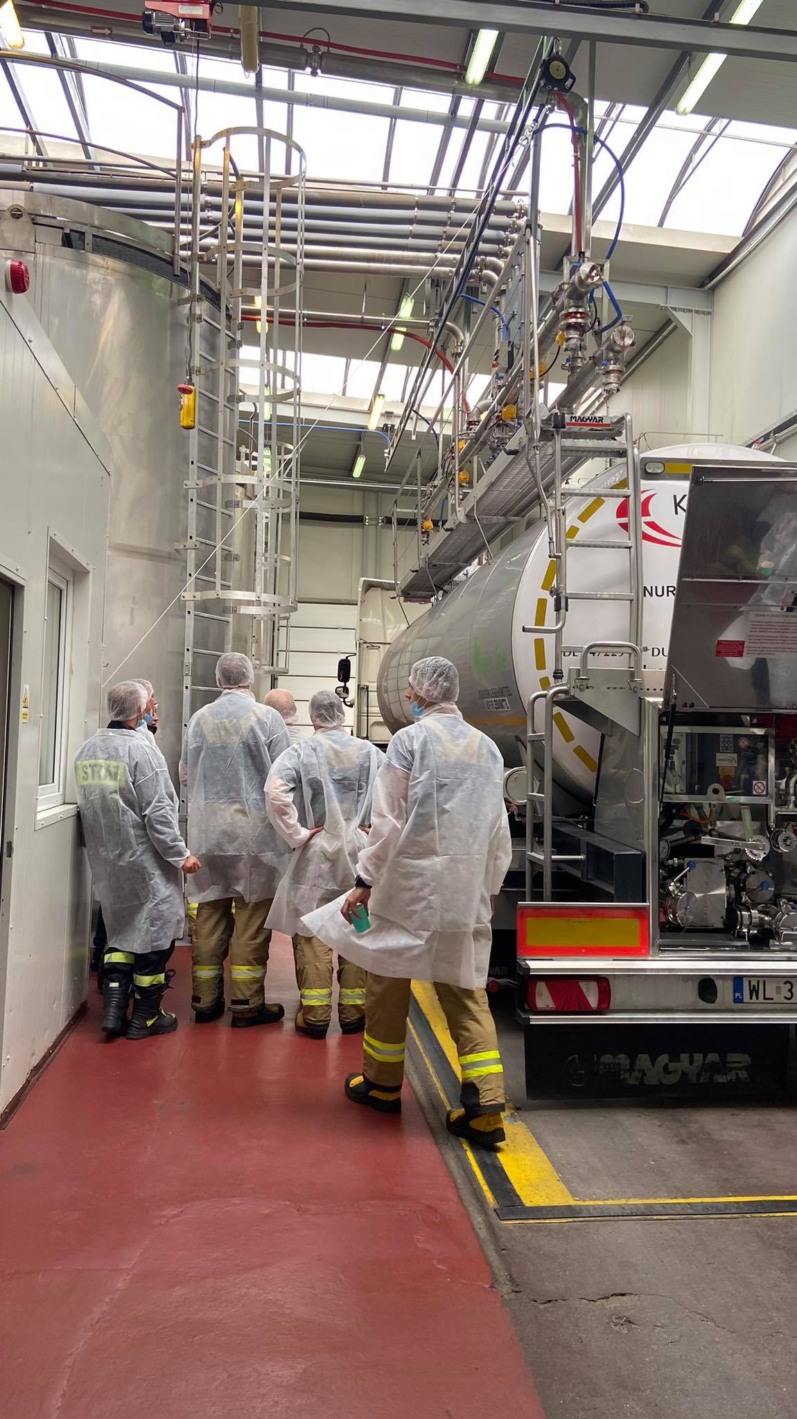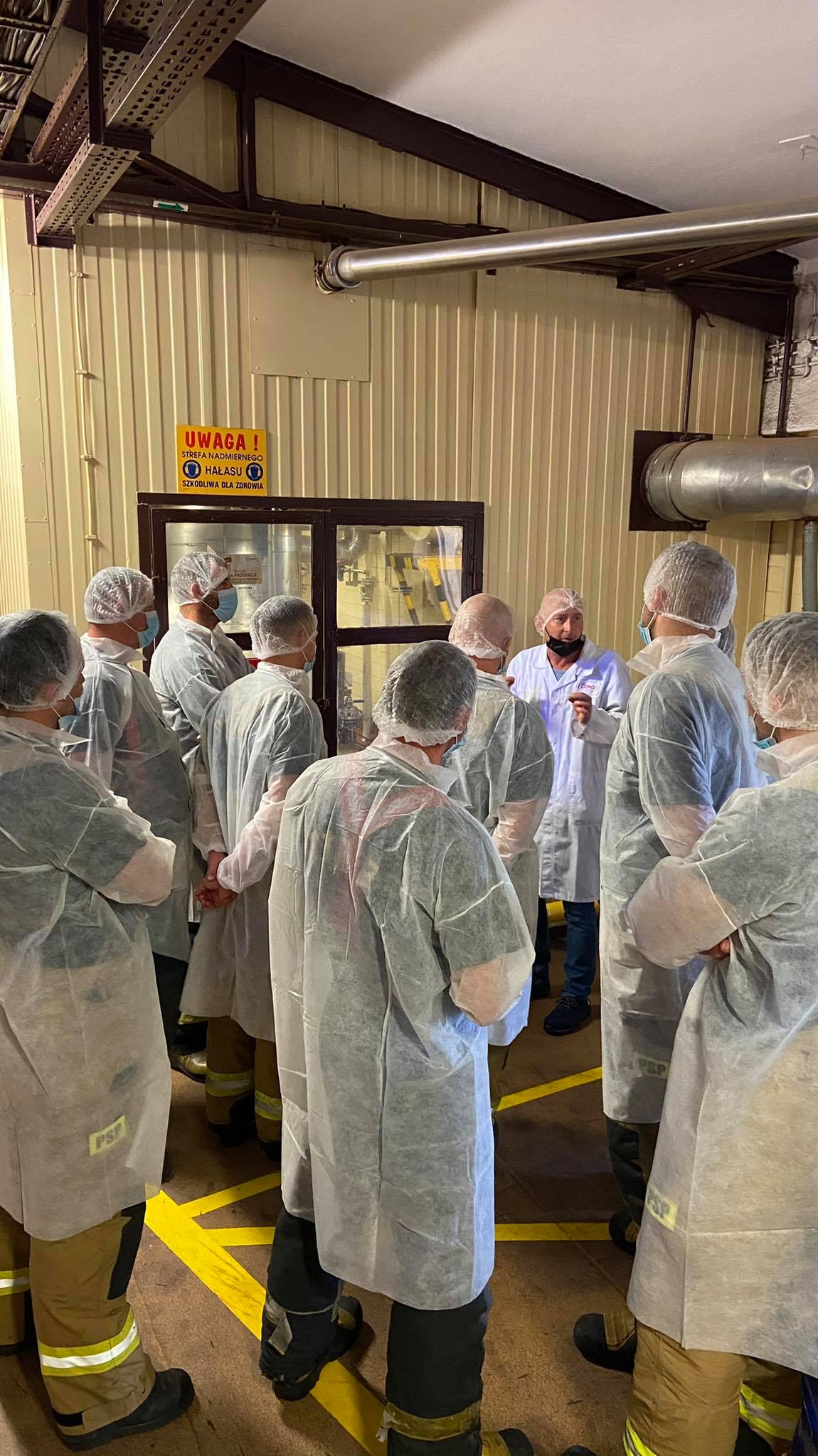 z przedstawicielami przedsiębiorstwa. Następnym elementem spotkania było zapoznanie się z obiektem fabryki. Funkcjonariusze zostali oprowadzeni po wszystkich budynkach, zapoznając się z procesami technologicznymi oraz obecnymi systemami zabezpieczeń pożarowych na każdym etapie produkcji.