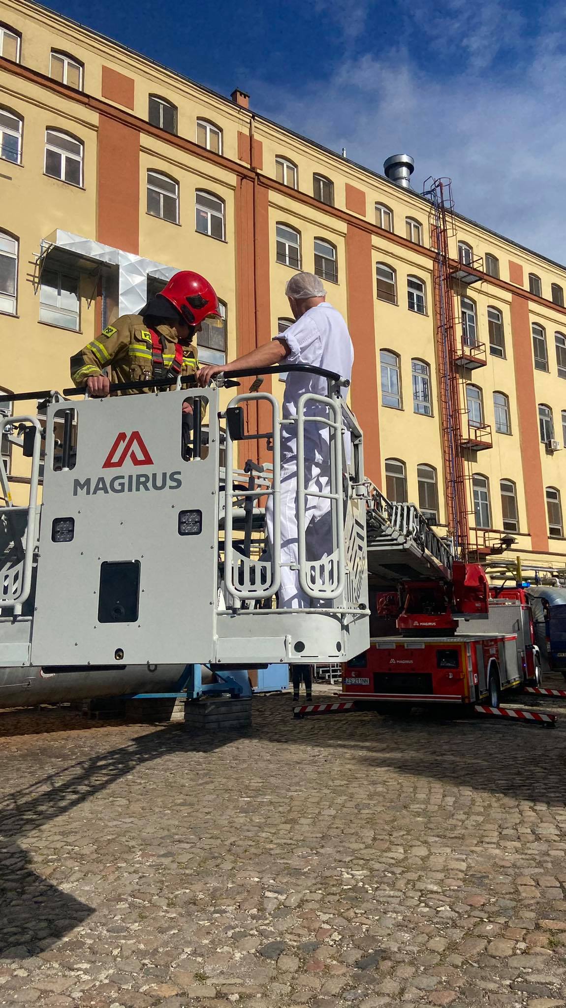 w Fabryce Czekolady. Celem ćwiczeń było zapoznanie się funkcjonariuszy z infrastrukturą zakładu, wykorzystywanymi systemami zabezpieczeń pożarowych. Założenie na miejscu ćwiczeń obejmowało pożar powstały w budynku produkcyjnym fabryki. Strażacy zabezpieczeni w sprzęt ochrony dróg oddechowych przeprowadzili przeszukanie obiektu. Pożar zlokalizowano w pomieszczeniu technicznym na 1 piętrze budynku. Ewakuacja pracowników została częściowo przeprowadzona przed przybyciem zastępów PSP. Ratownicy za pomocą drabiny mechanicznej ewakuowali jednego z pracowników znajdującego się w pomieszczeniu na 3 piętrze budynku objętego pożarem. Po zakończeniu części praktycznej ćwiczeń omówiono przeprowadzone działania