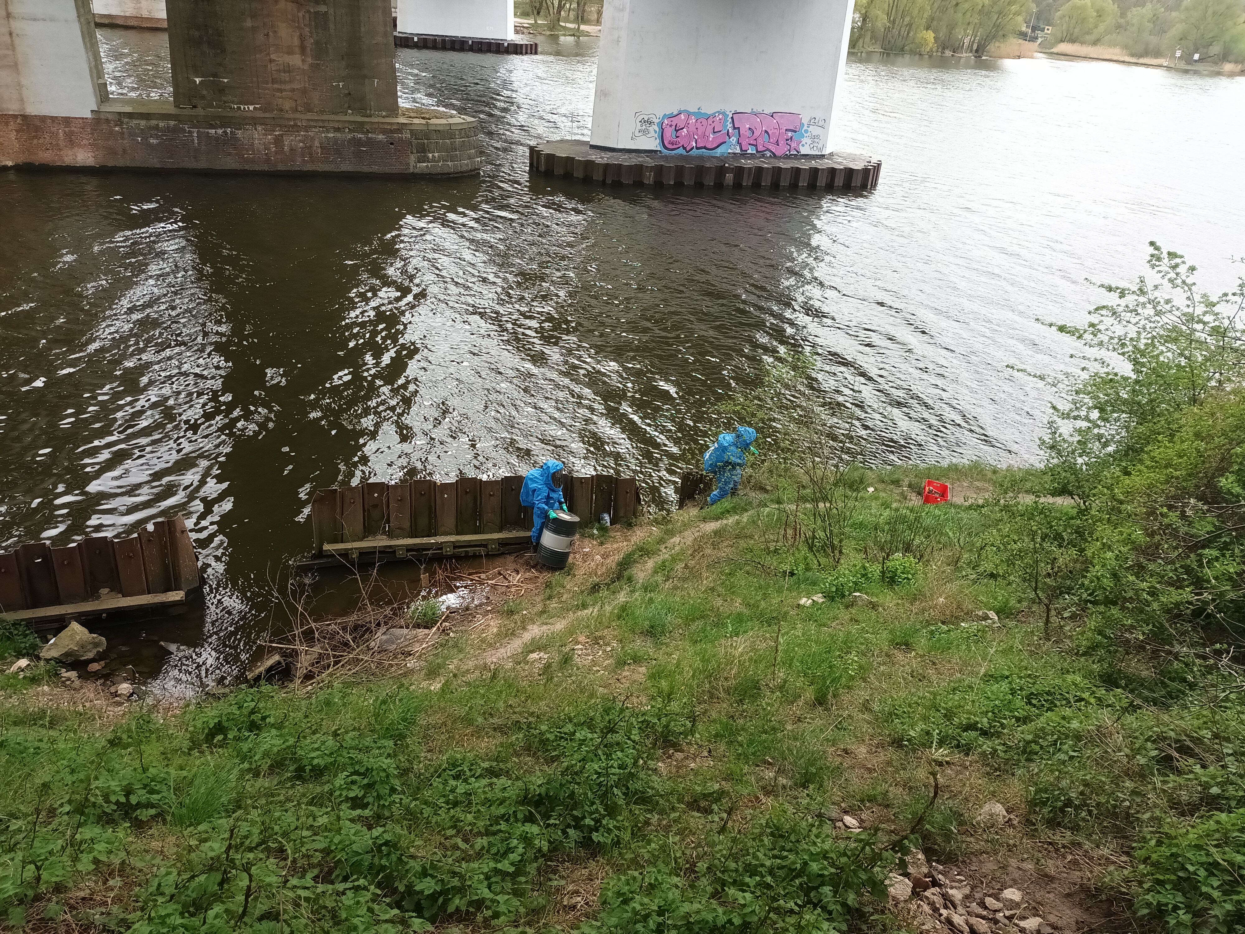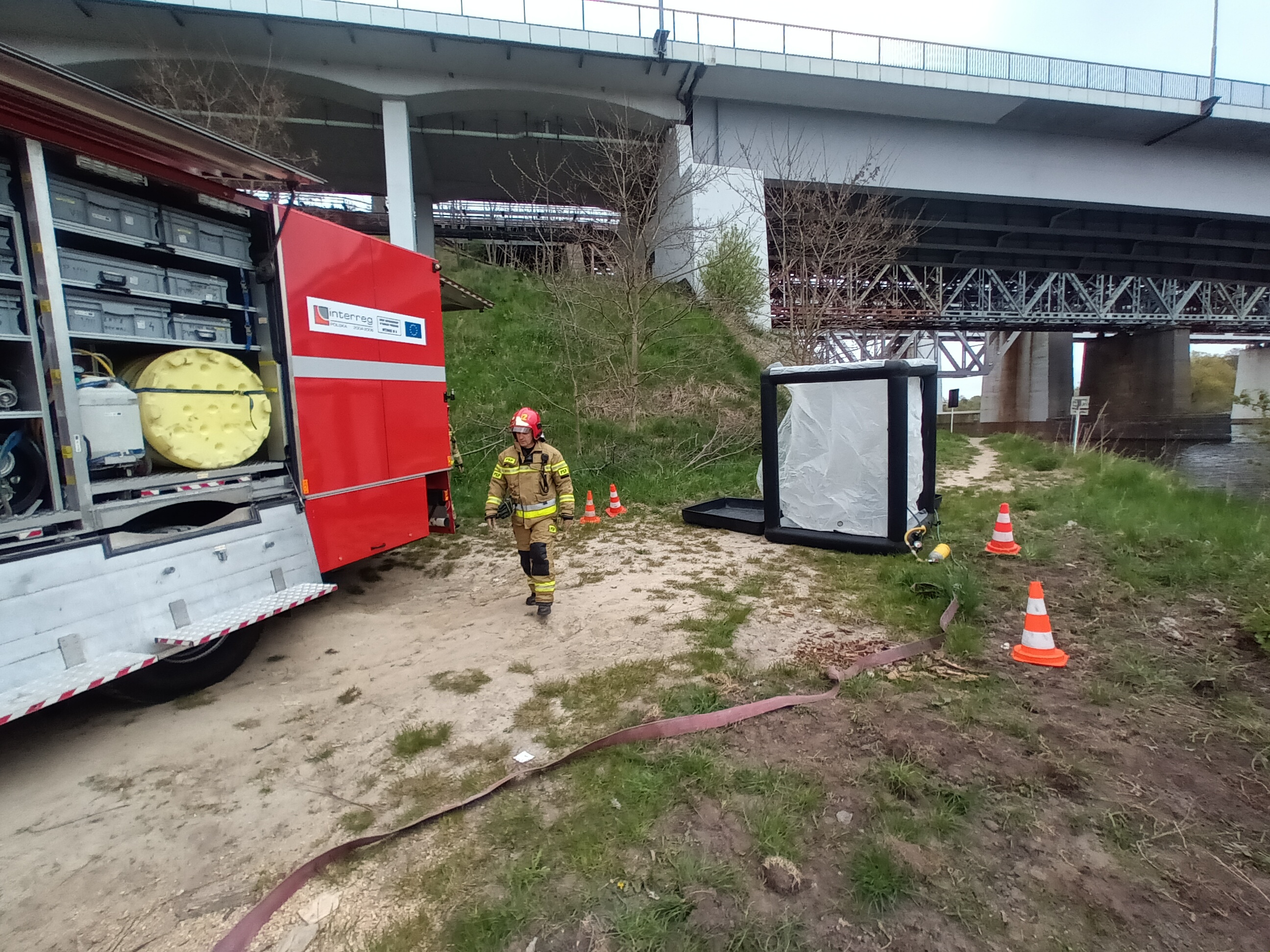 W dniach 25, 26, 27 kwietnia 2022 r. odbyły się ćwiczenia zgrywające specjalistycznych grup ratowniczych na moście Dziewoklicz (SGRW „Pająk”, SGRW-N Szczecin, SGR Chem-Eko „Gryf”). Celem ćwiczeń było doskonalenie technik z zakresu ratownictwa chemiczno-ekologicznego, wysokościowego oraz wodno- nurkowego w zakresie specjalistycznym. Przećwiczono postępowanie w przypadku rozszczelnienia zbiornika z niezidentyfikowaną substancją, ewakuacji osoby poszkodowanej przy pomocy technik alpinistycznych oraz zwiad nurkowy w rzece Odra.