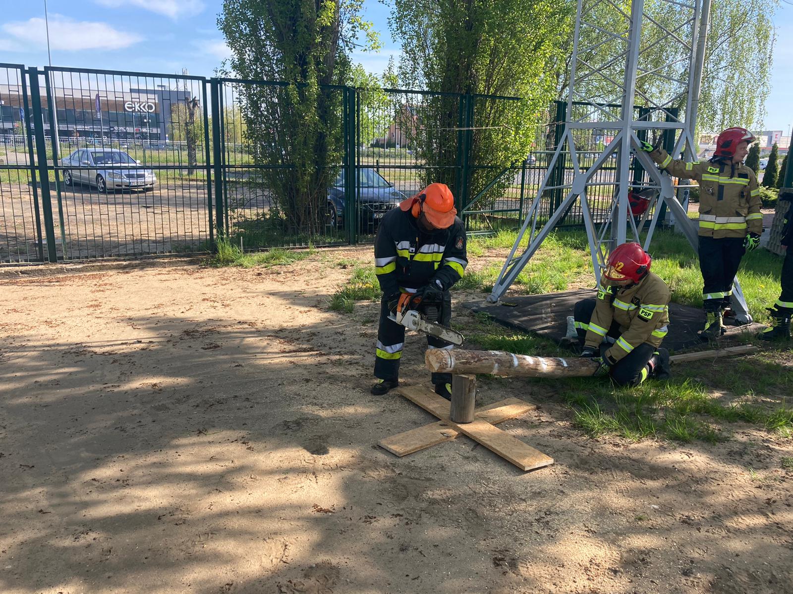11 maja na terenie jednostki ratowniczo-gaśniczej nr 2 odbyły się zajęcia szkoleniowe z zakresu obsługi pilarek spalinowych. Ćwiczenia praktyczne poprzedzone były zajęciami teoretycznymi, podczas których omówiono BHP oraz zagrożenia mogące pojawić się podczas prac związanych z wycinką drzew.