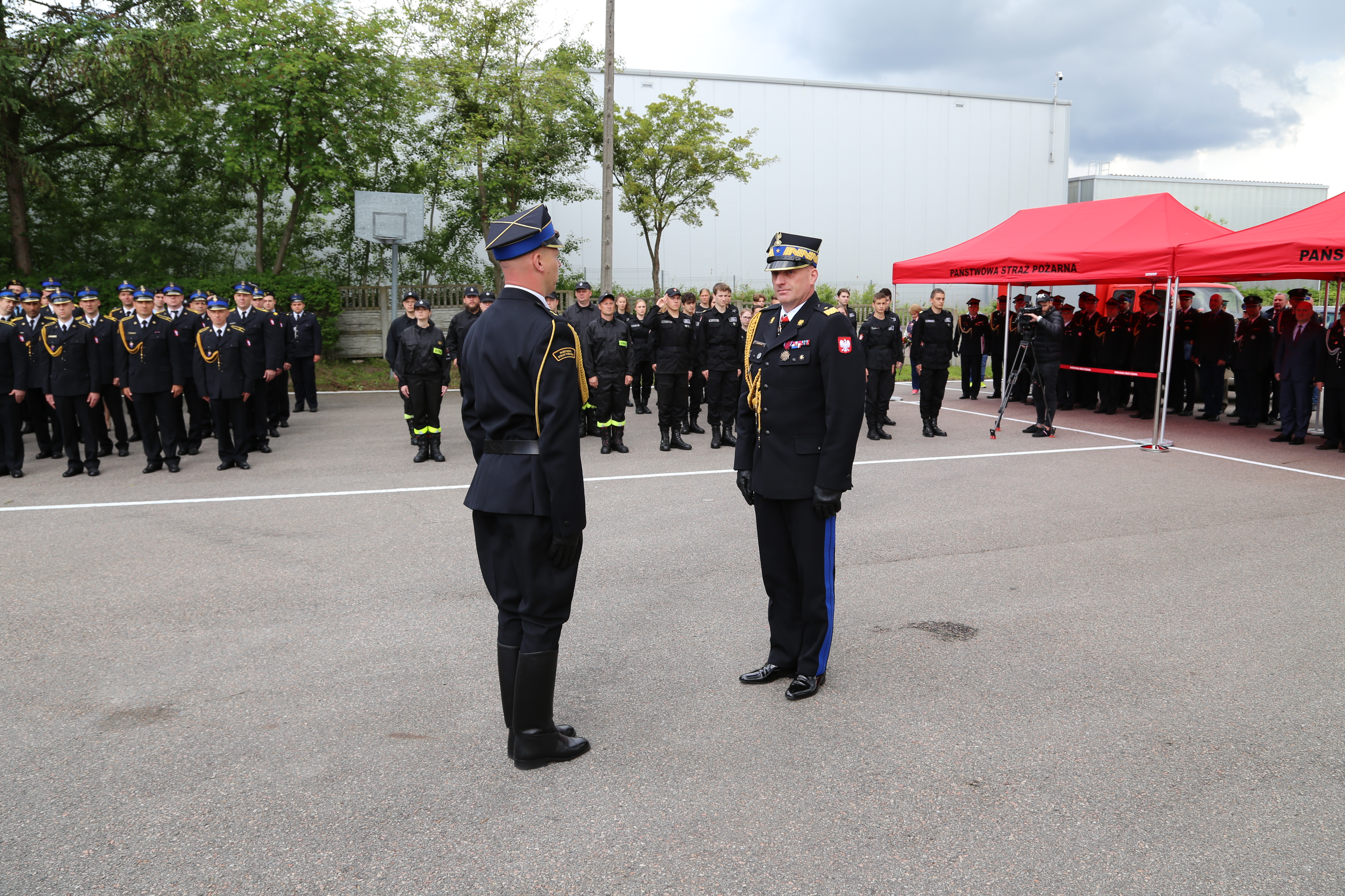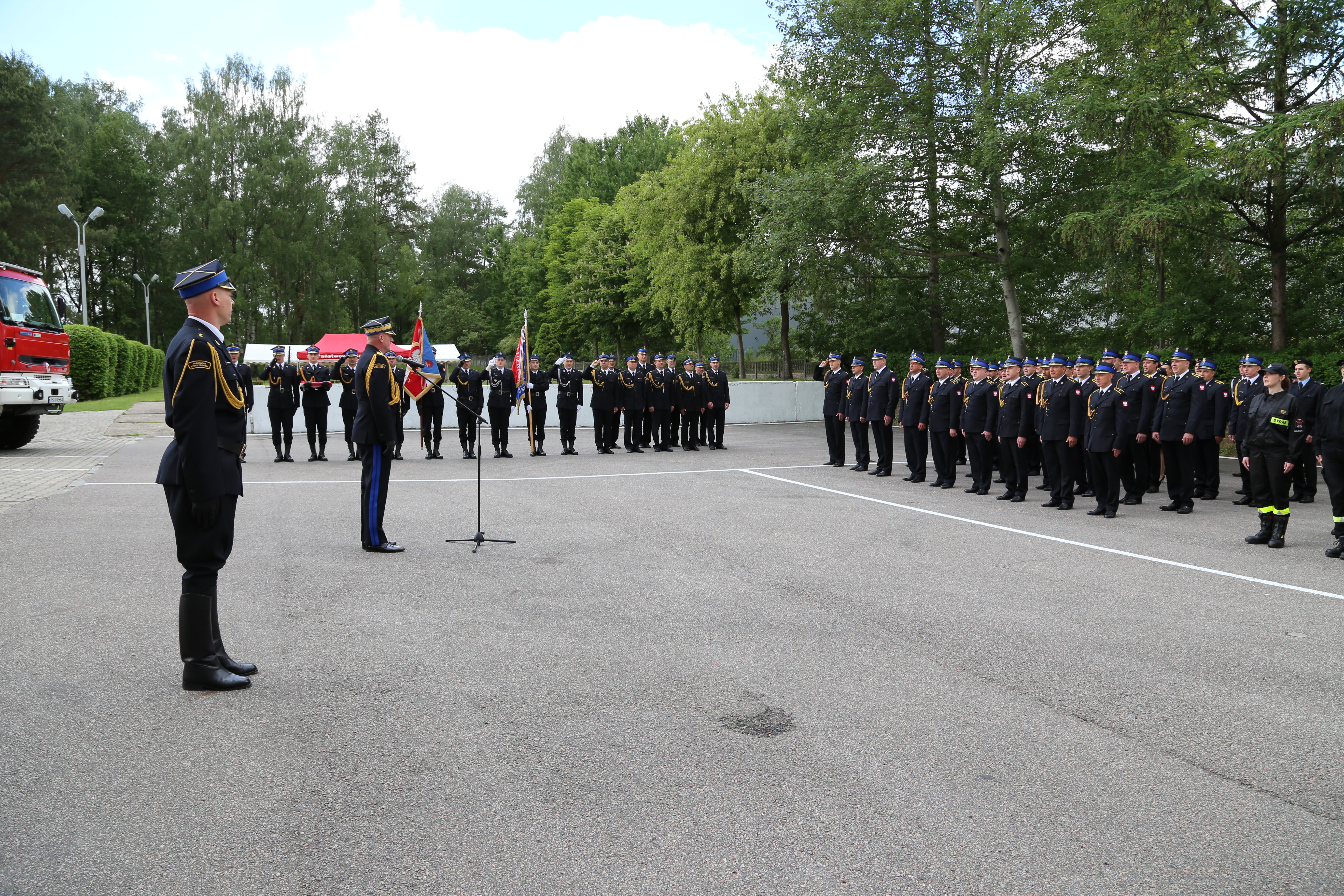Meldunek Zachodniopomorskiemu Komendantowi Wojewódzkiemu Państwowej Straży Pożarnej nadbryg. Jarosławowi Tomczykowi złożył dowódca uroczystości mł. kpt. Łukasz Adamowicz.