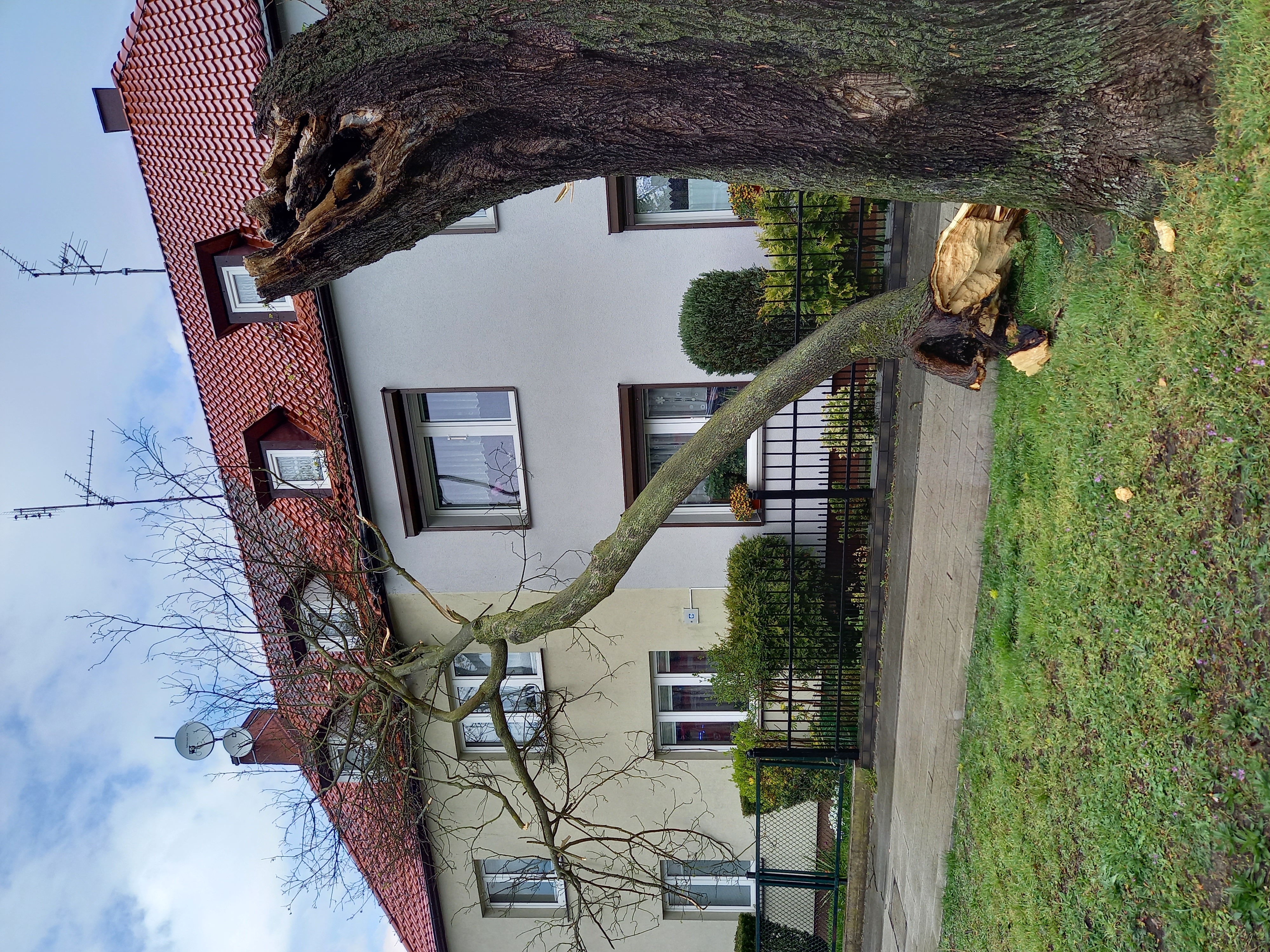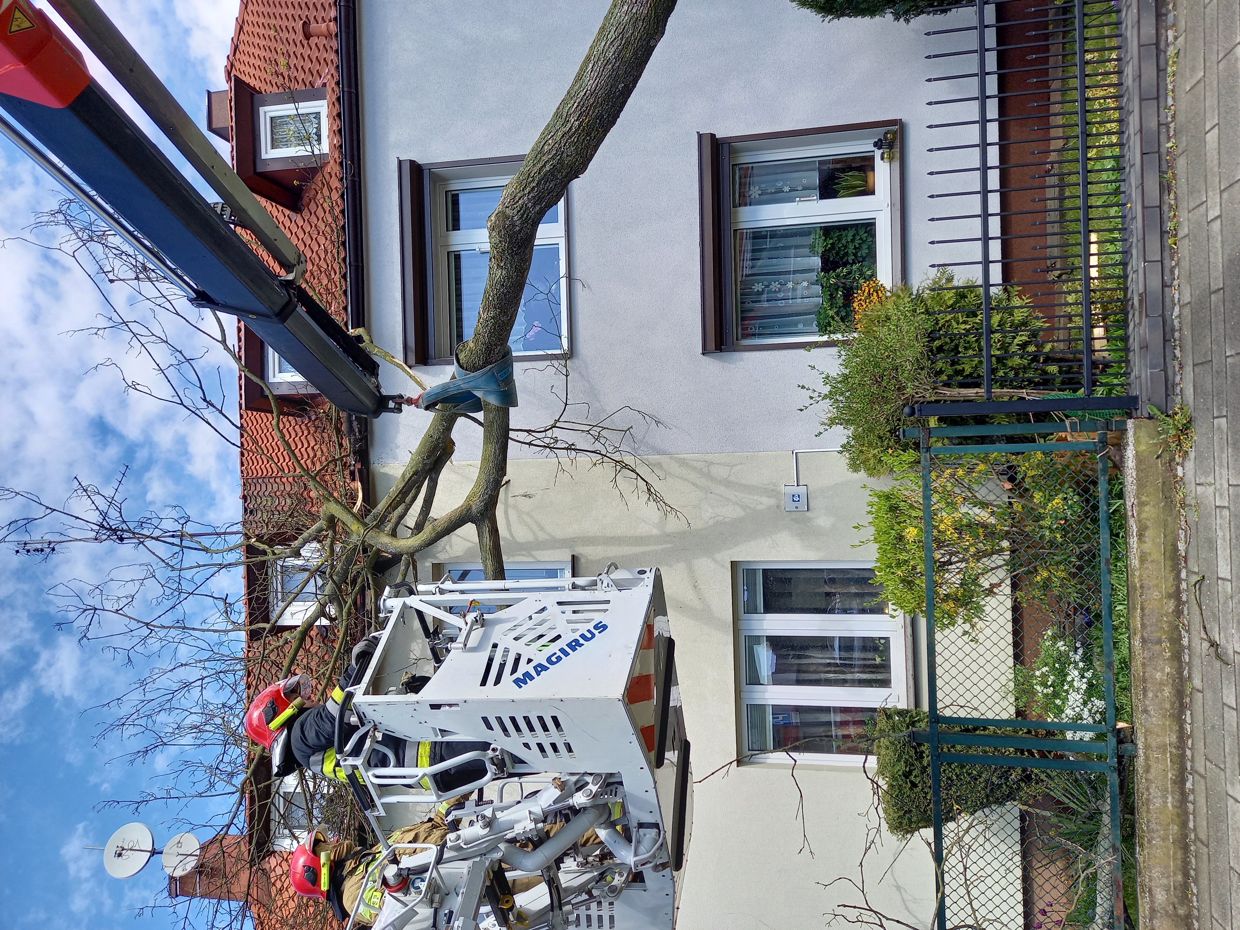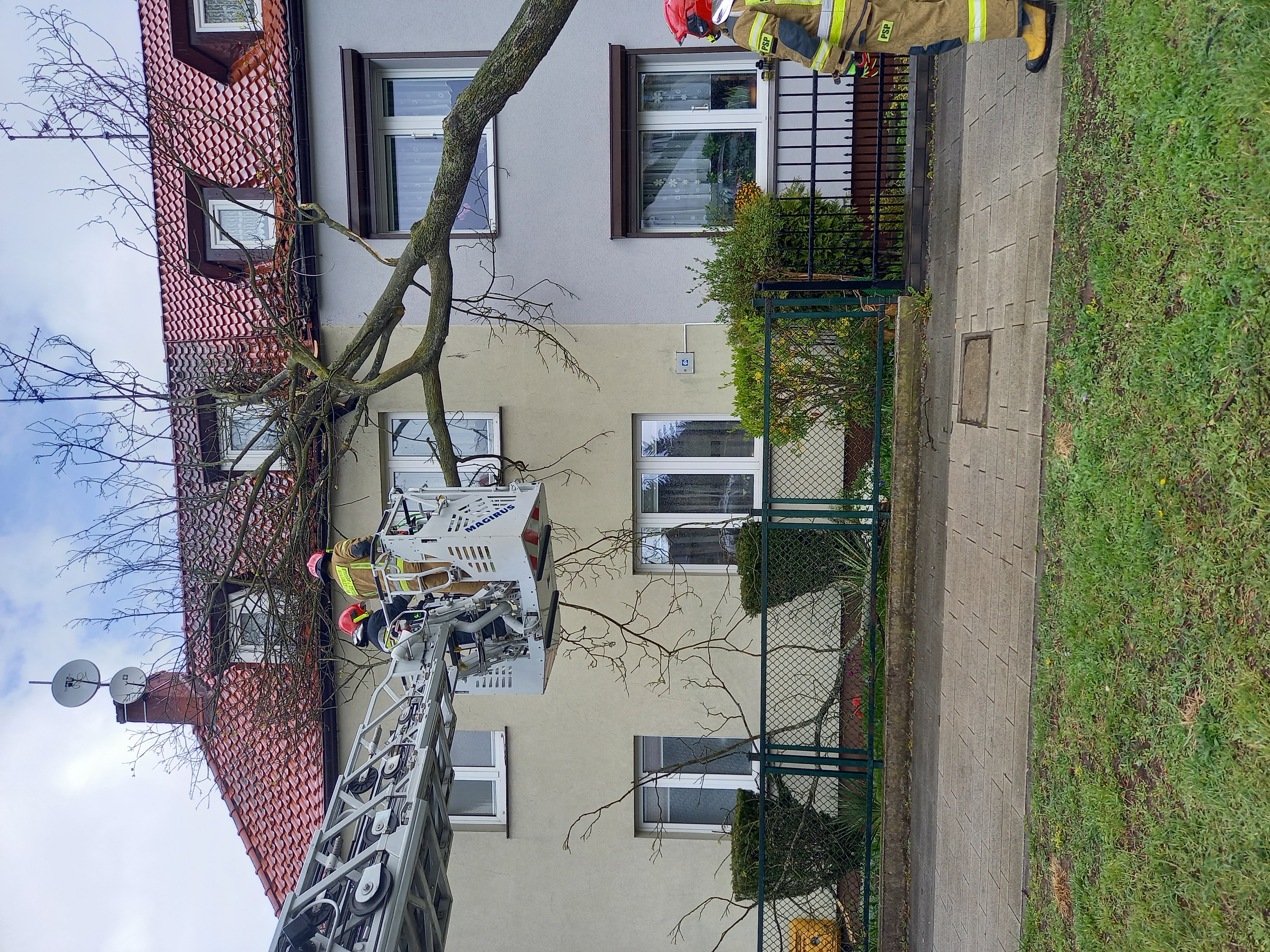 W dniu 05 maja 2021r. o godzinie 12:07 wpłynęło zgłoszenie do Stanowiska Kierowania Komendanta Miejskiego Państwowej Straży Pożarnej w Szczecinie o powalonym konarze drzewa na budynek wielorodzinny przy ul. Ku Słońcu 47. Na miejsce działań zadysponowano 3 zastępy, w tym jeden zastęp ratownictwa technicznego. Działania zastępów polegały na zabezpieczeniu miejsca zdarzenia oraz ściągnięciu opartego konaru drzewa z budynku przy pomocy dźwigu HDS.