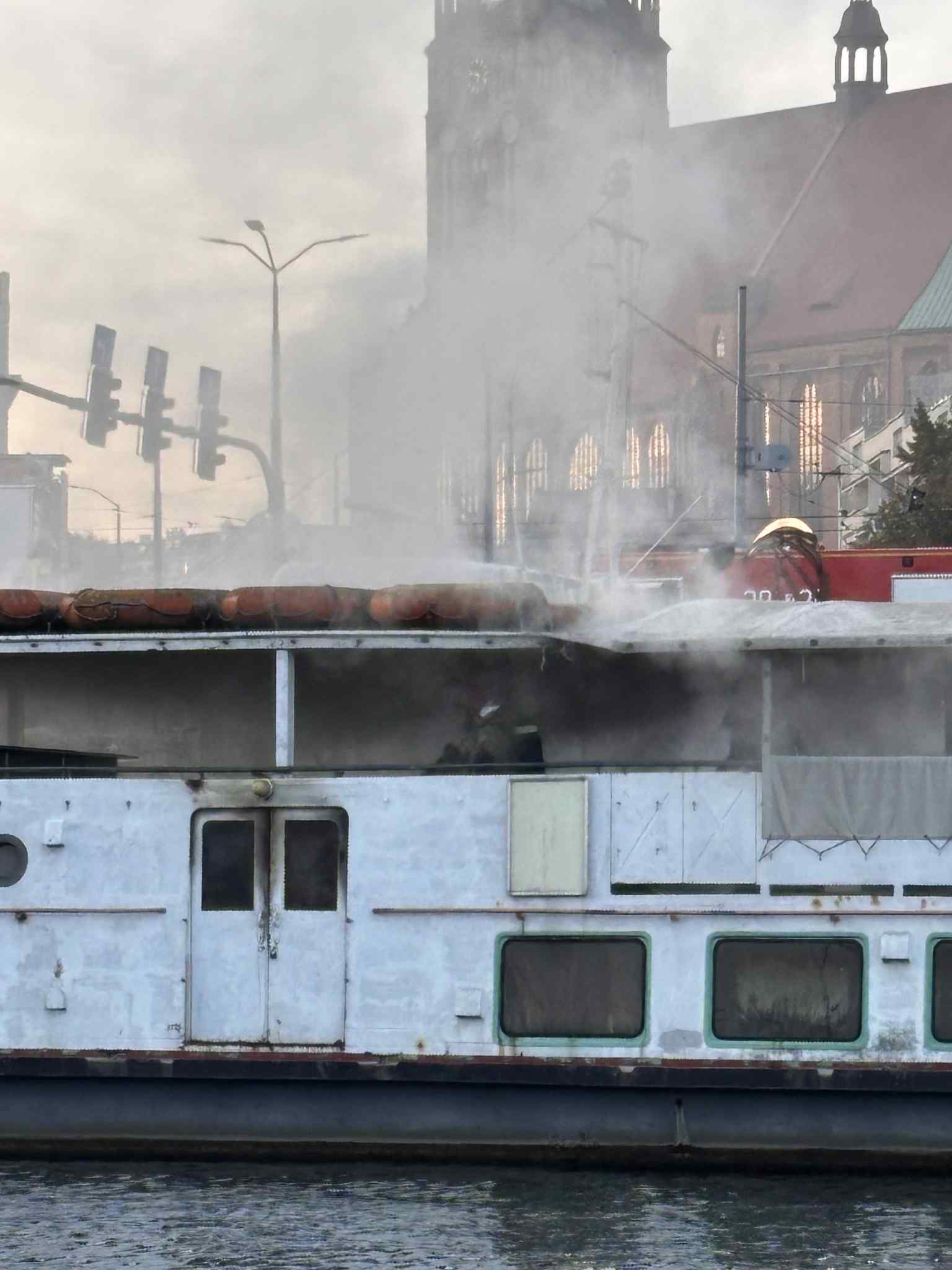 Pożar barki „Daria” przy nabrzeżu Wieleckim.