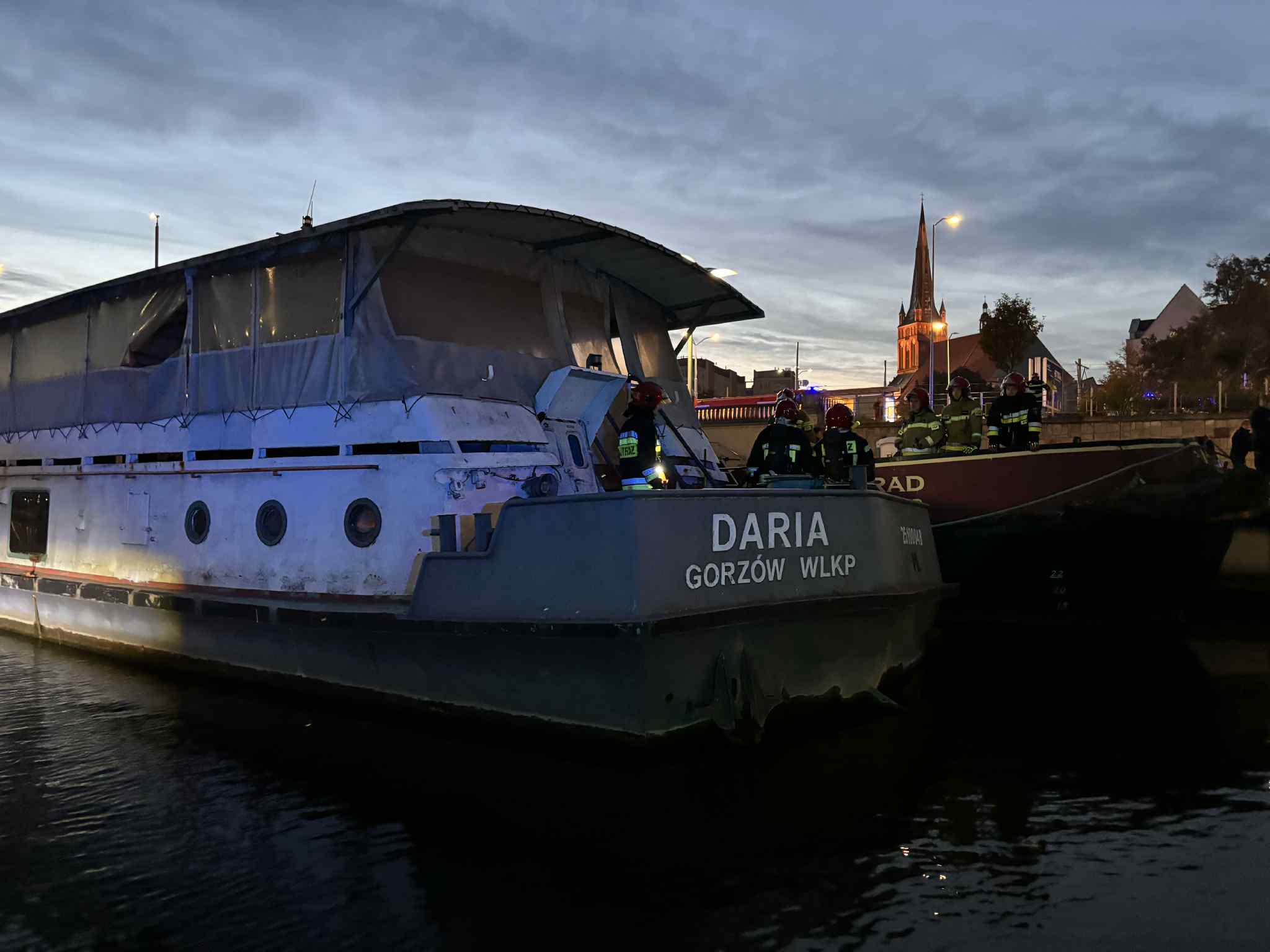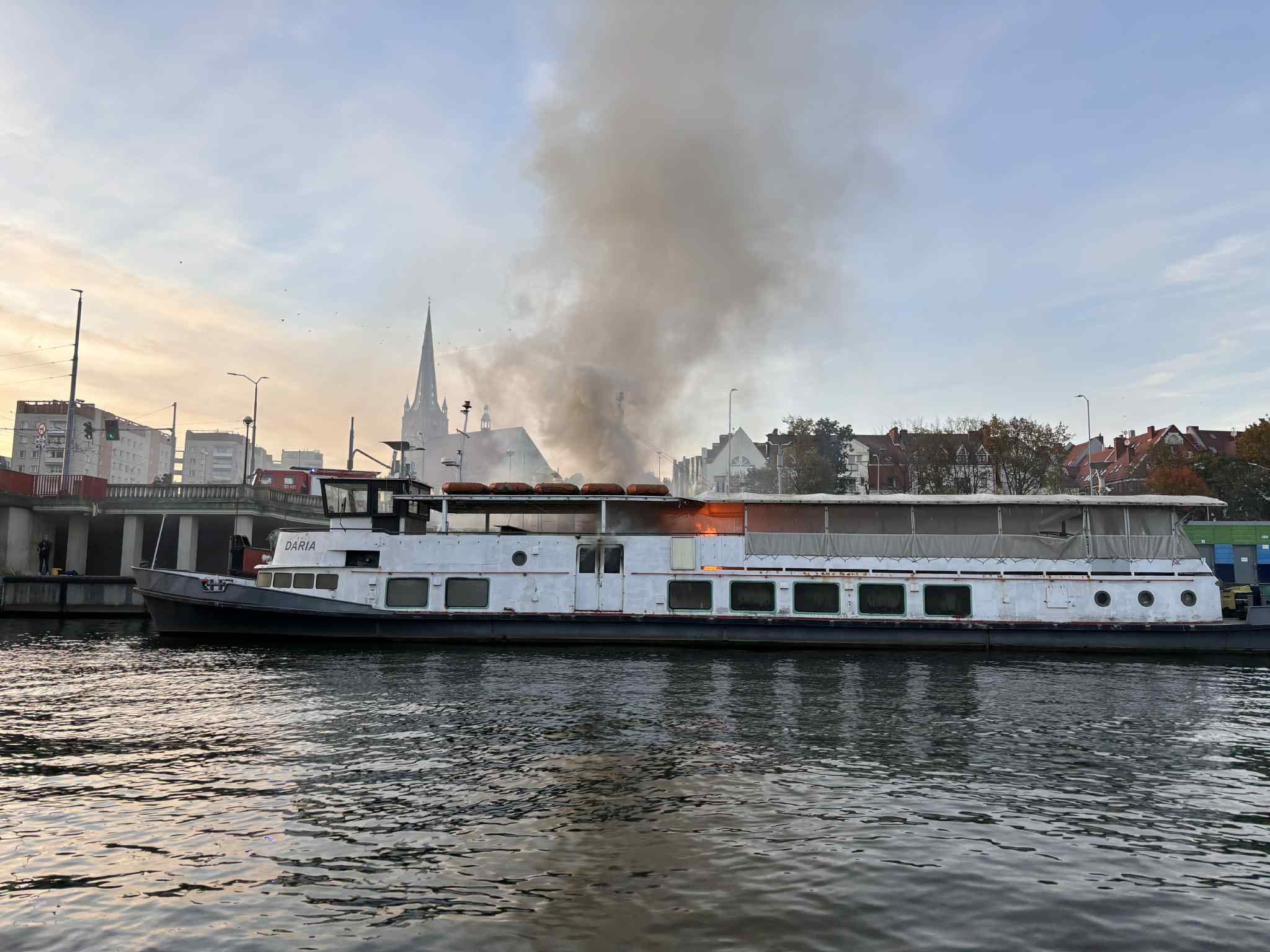 W dniu 20 października 2025 r. o godzinie 17:39 Stanowisko Kierowania Komendanta Miejskiego PSP w Szczecinie otrzymało zgłoszenie o pożarze barki „Daria”, cumującej przy nabrzeżu Wieleckim w centrum miasta.