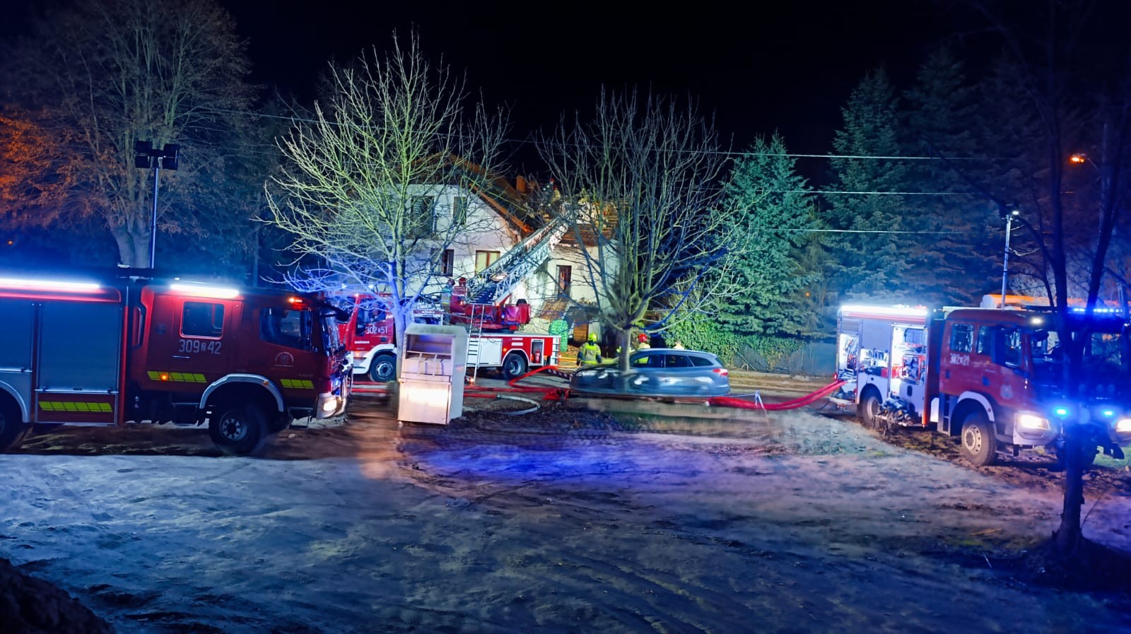 Na miejsce skierowano pięć zastępów straży pożarnej, łącznie 20 strażaków. Podczas działań ewakuowano trzy osoby – kobietę z dwójką dzieci (12 i 17 lat) – z poddasza budynku przy użyciu drabiny. Wszyscy poszkodowani zostali przewiezieni do szpitala z objawami podtrucia gazami pożarowymi.