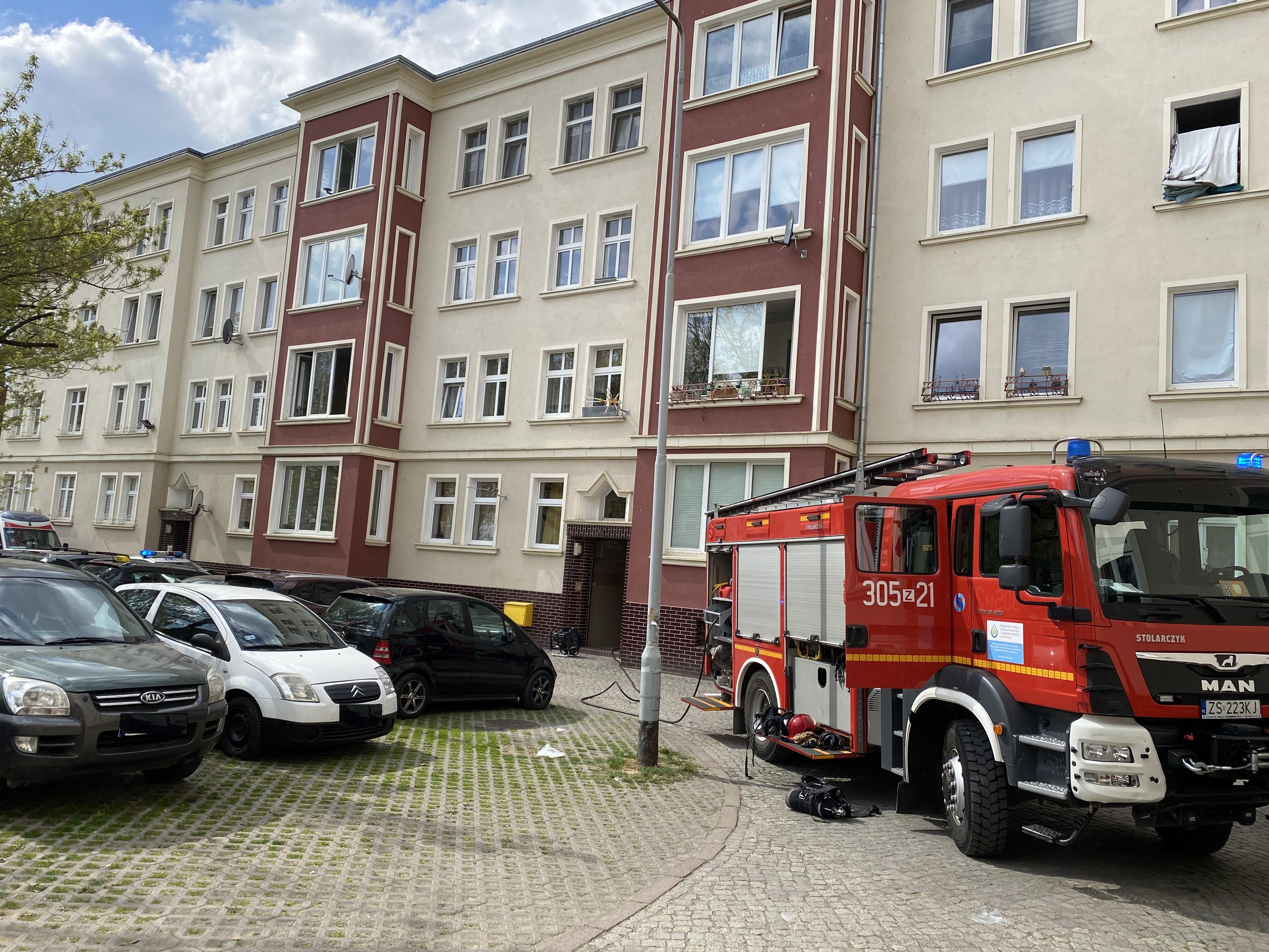 W dniu 24 kwietnia 2022r. o godz. 13:48 do stanowiska kierowania Komenda Miejskiego Państwowej Straży Pożarnej w Szczecinie wpłynęło zgłoszenie o pożarze w mieszkaniu przy ulicy Montwiłła. Po przybyciu na miejsce zdarzenia pierwszych zastępów ustalono, że pożarem objęte jest mieszkanie na pierwszym piętrze. Lokatorka mieszkania ewakuowała się przed przybyciem Jednostek Straży Pożarnej. Pomocy poszkodowanej udzielił będący na miejscu Zespół Ratownictwa Medycznego. Pożar ugaszono, następnie oddymiono i przewietrzono budynek.