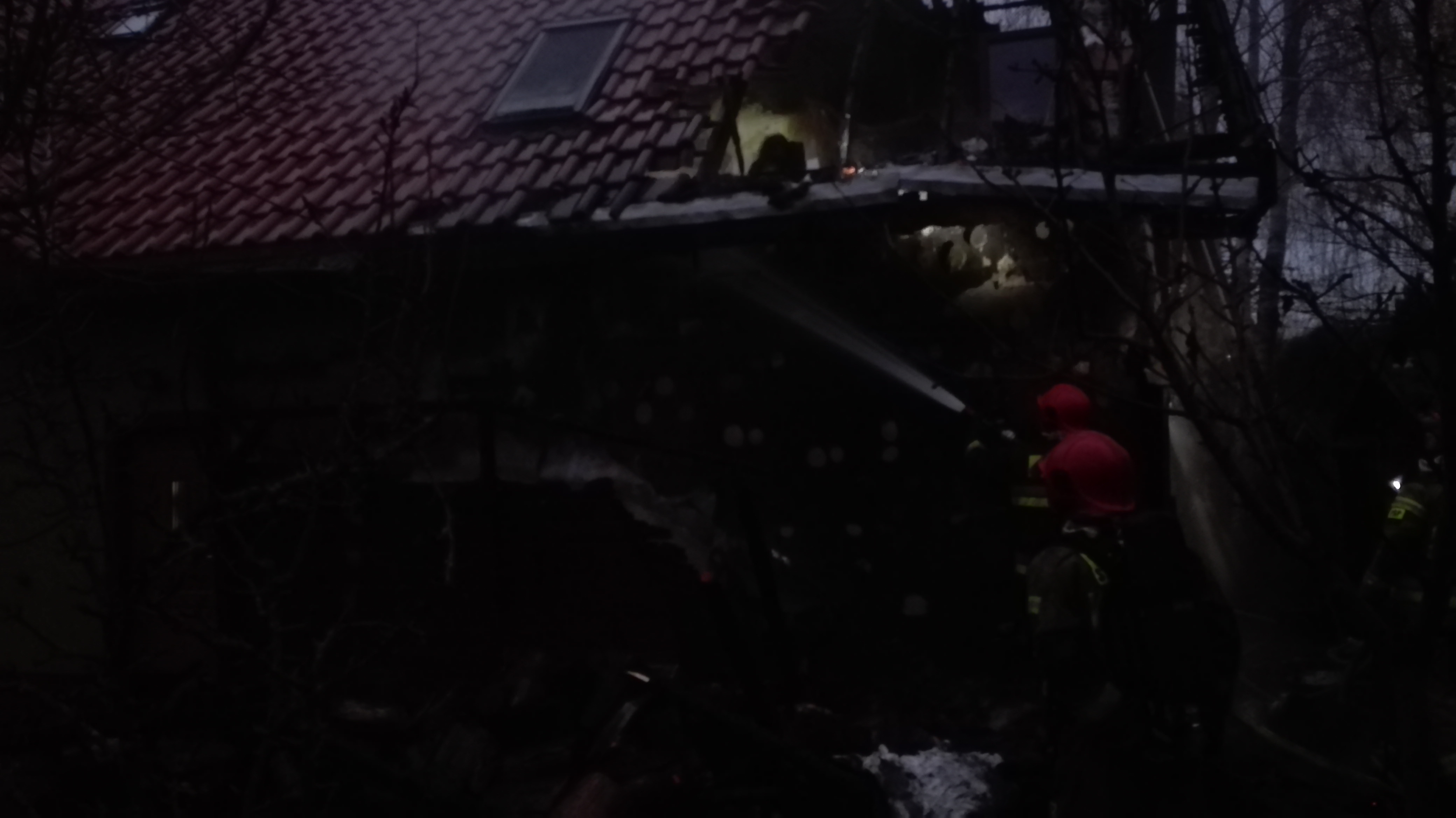 z budynku ewakuowała się jedna osoba. Działania Państwowej Straży Pożarnej polegały na ugaszeniu pożaru oraz niedopuszczeniu do przeniesienia się ognia na część mieszkalną. Następnie prowadzono częściową rozbiórkę poddasza w celu dogaszenia wszystkich zarzewi ognia.