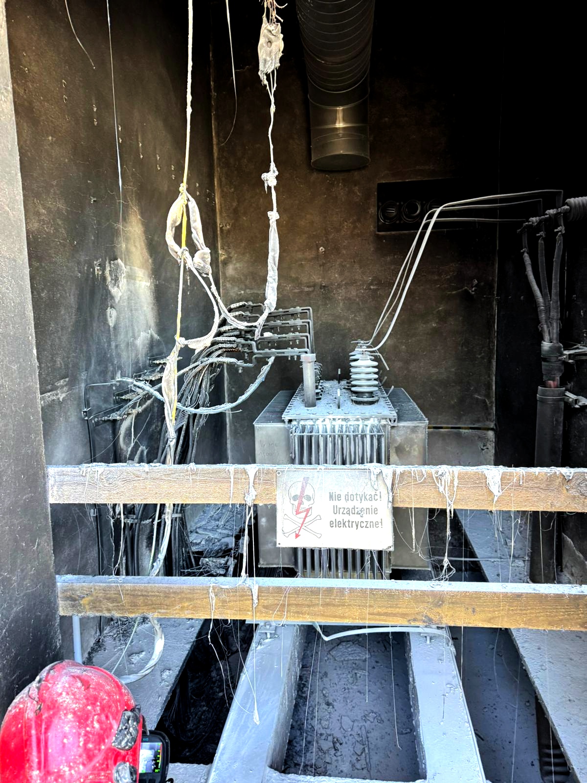 Dzięki szybkiej i skutecznej interwencji pożar nie rozprzestrzenił się na sąsiednie dwie komory transformatora ani przyległe pomieszczenia techniczne.