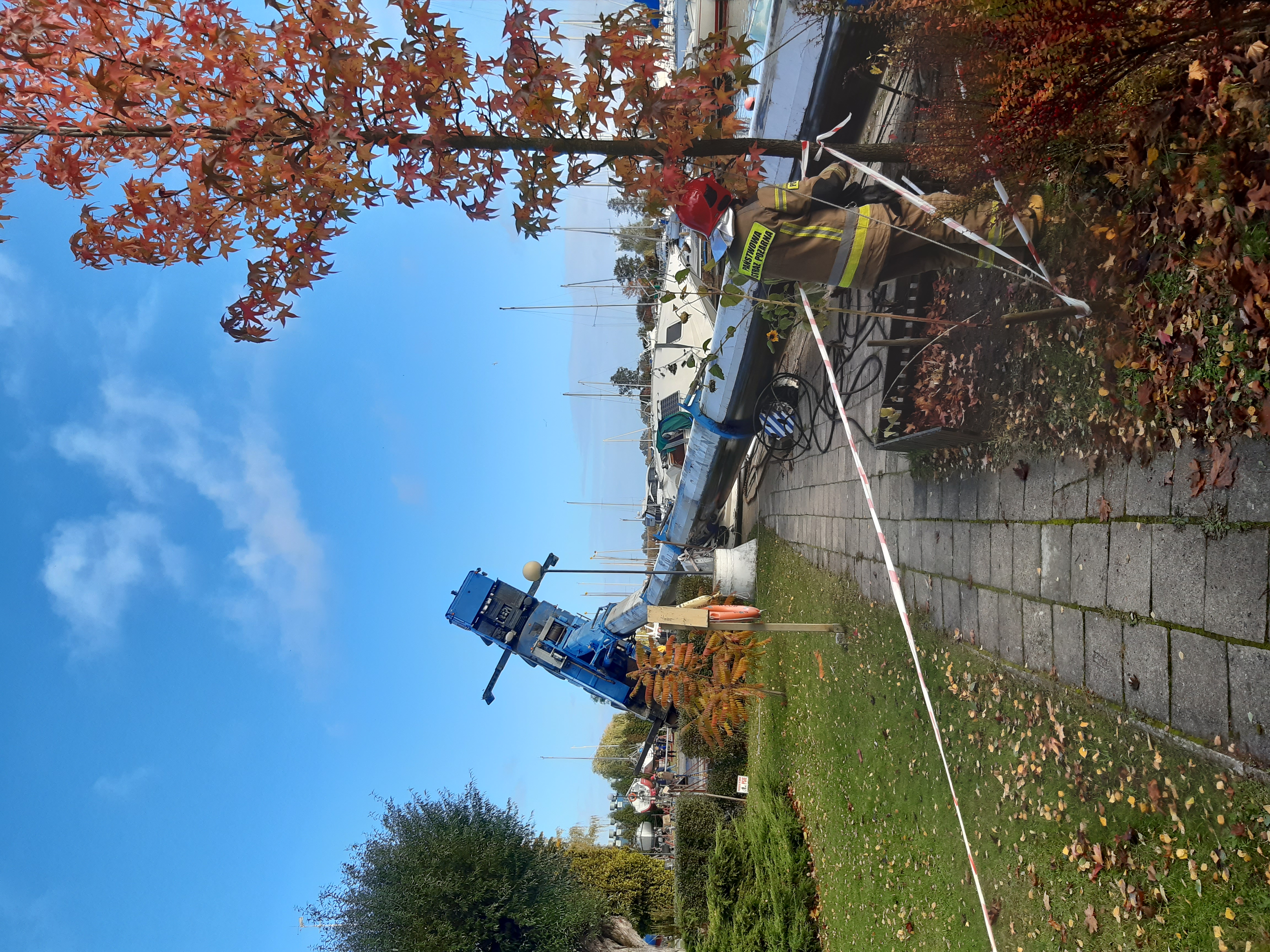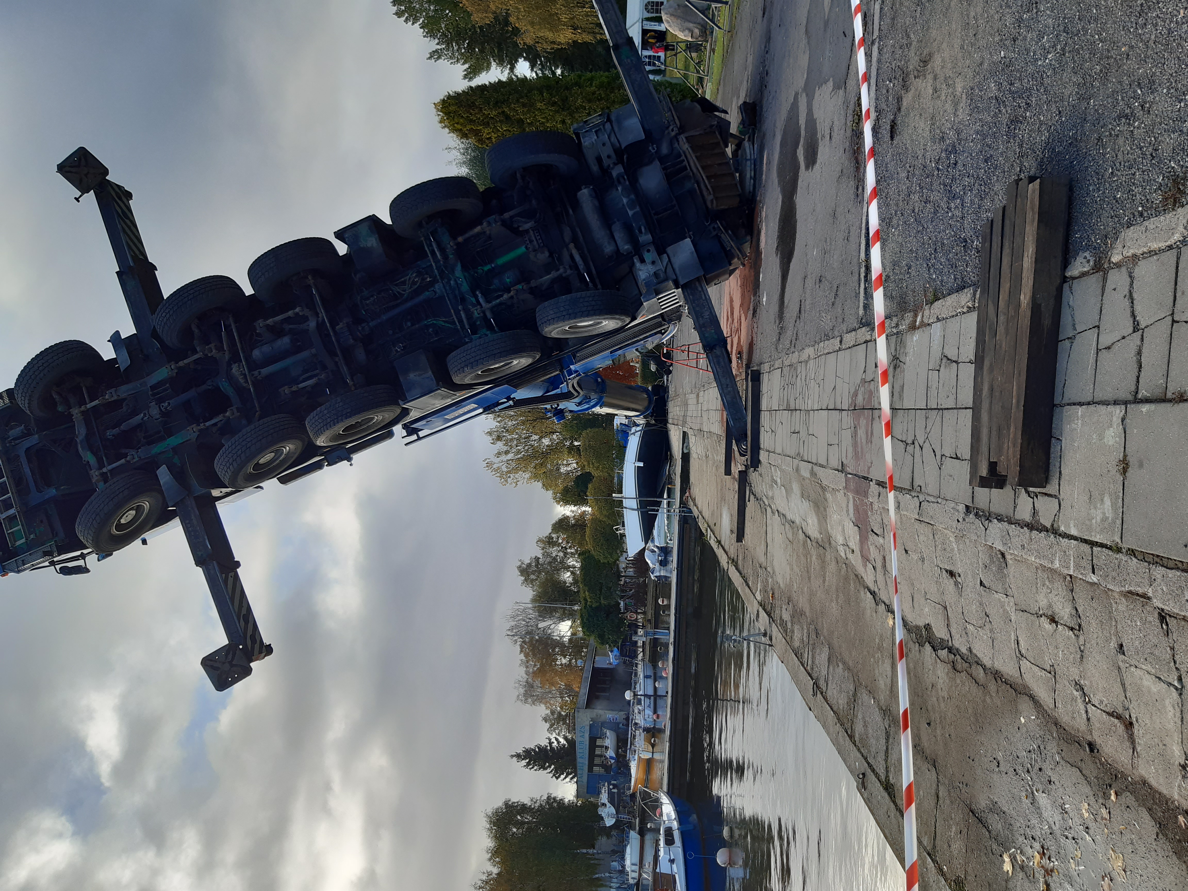 23 października 2021 r. o godzinie 9.00 wpłynęło zgłoszenie do Stanowiska Kierowania Komendanta Miejskiego Państwowej Straży Pożarnej w Szczecinie o przewróconym żurawiu samojezdnym na nabrzeżu przystani jachtowej, podczas próby wyciągania jednostek pływających z wody. Po przybyciu zastępów na miejsce zdarzenia, działania PSP polegały na zabezpieczeniu terenu akcji, neutralizacji wyciekającego oleju hydraulicznego oraz asystowaniu podczas stawiania pojazdu na koła przy pomocy drugiego dźwigu.