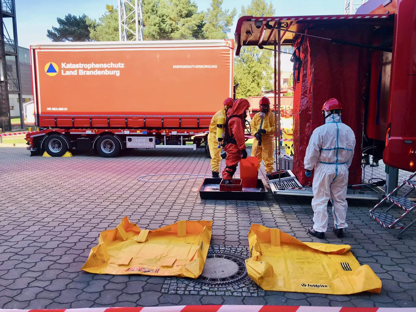 W dniach 25–28 września 2025 r. na terenie Krajowej szkoły i placówki technicznej ds. ochrony przeciwpożarowej i katastroficznej w Eisenhüttenstadt (Niemcy) odbyły się szkoleniowe ćwiczenia ratownicze w ramach projektu RescEU CBRN DEKON Weekend.