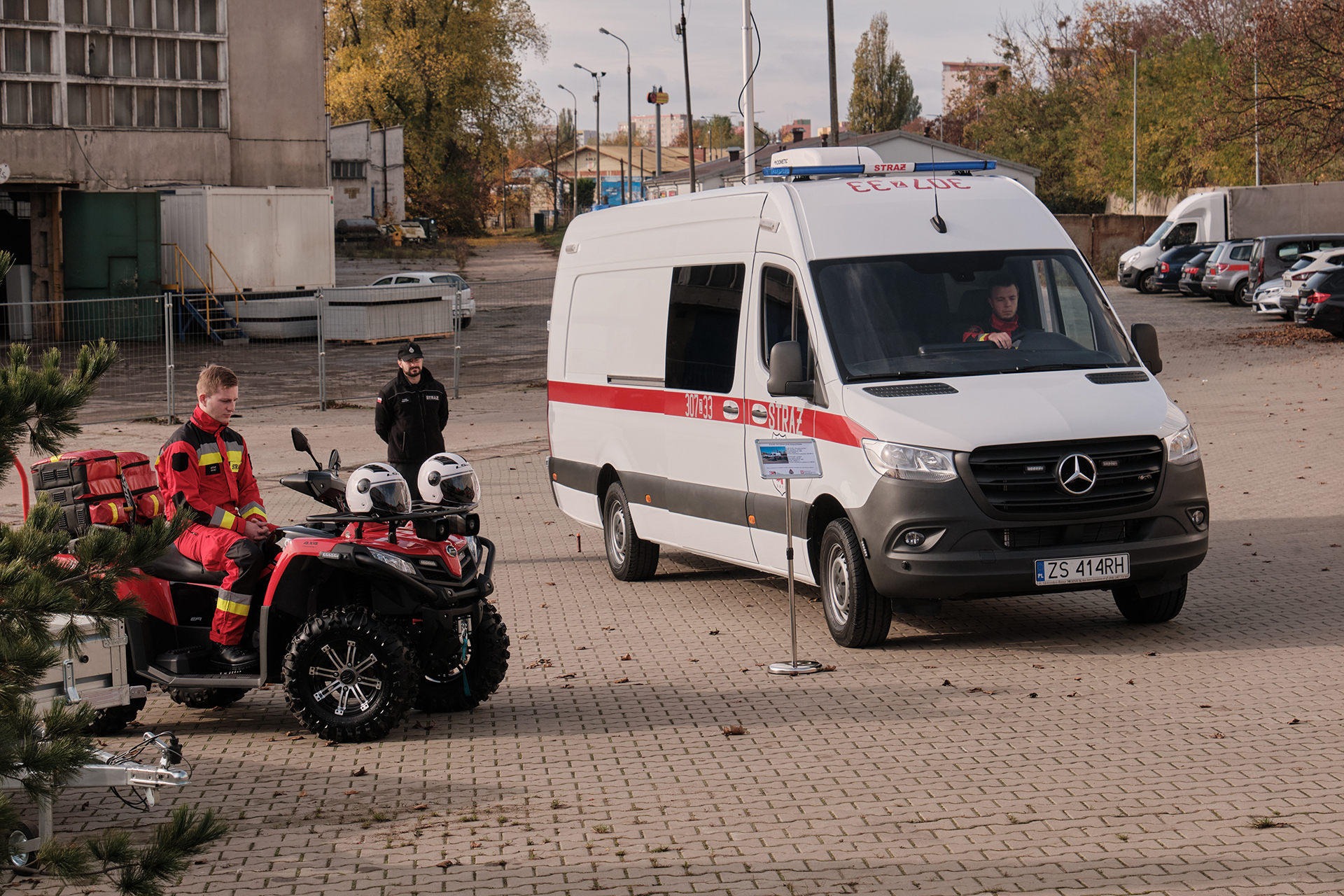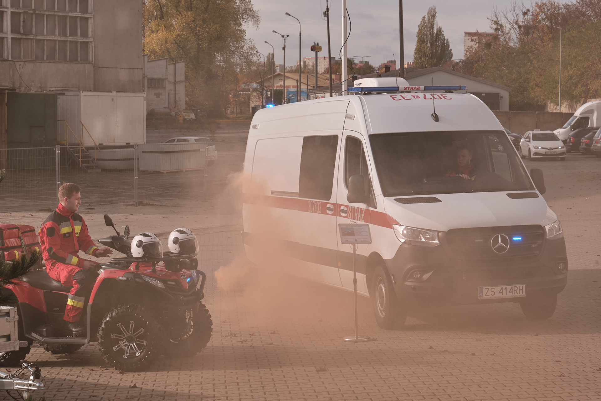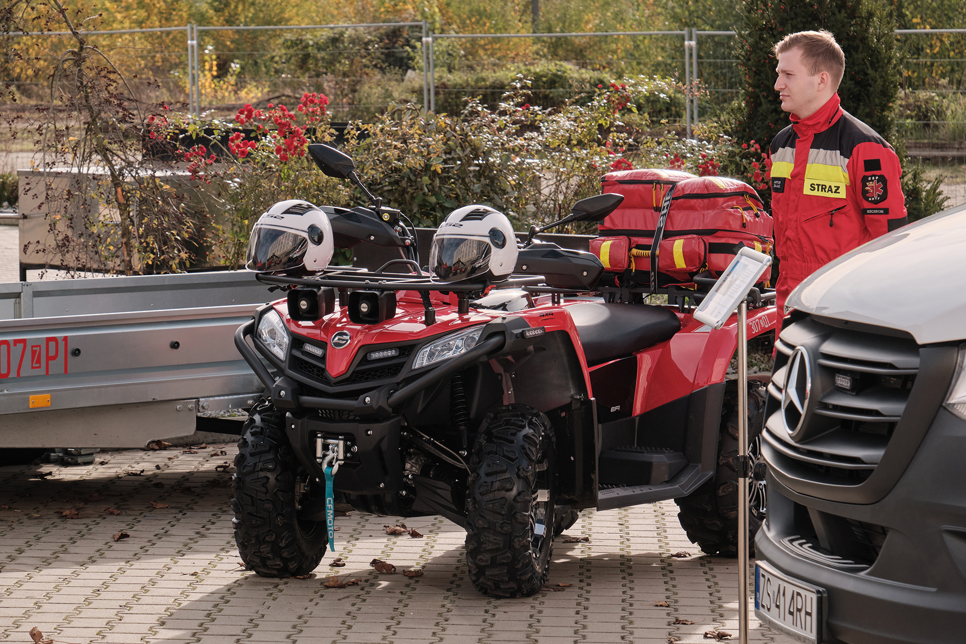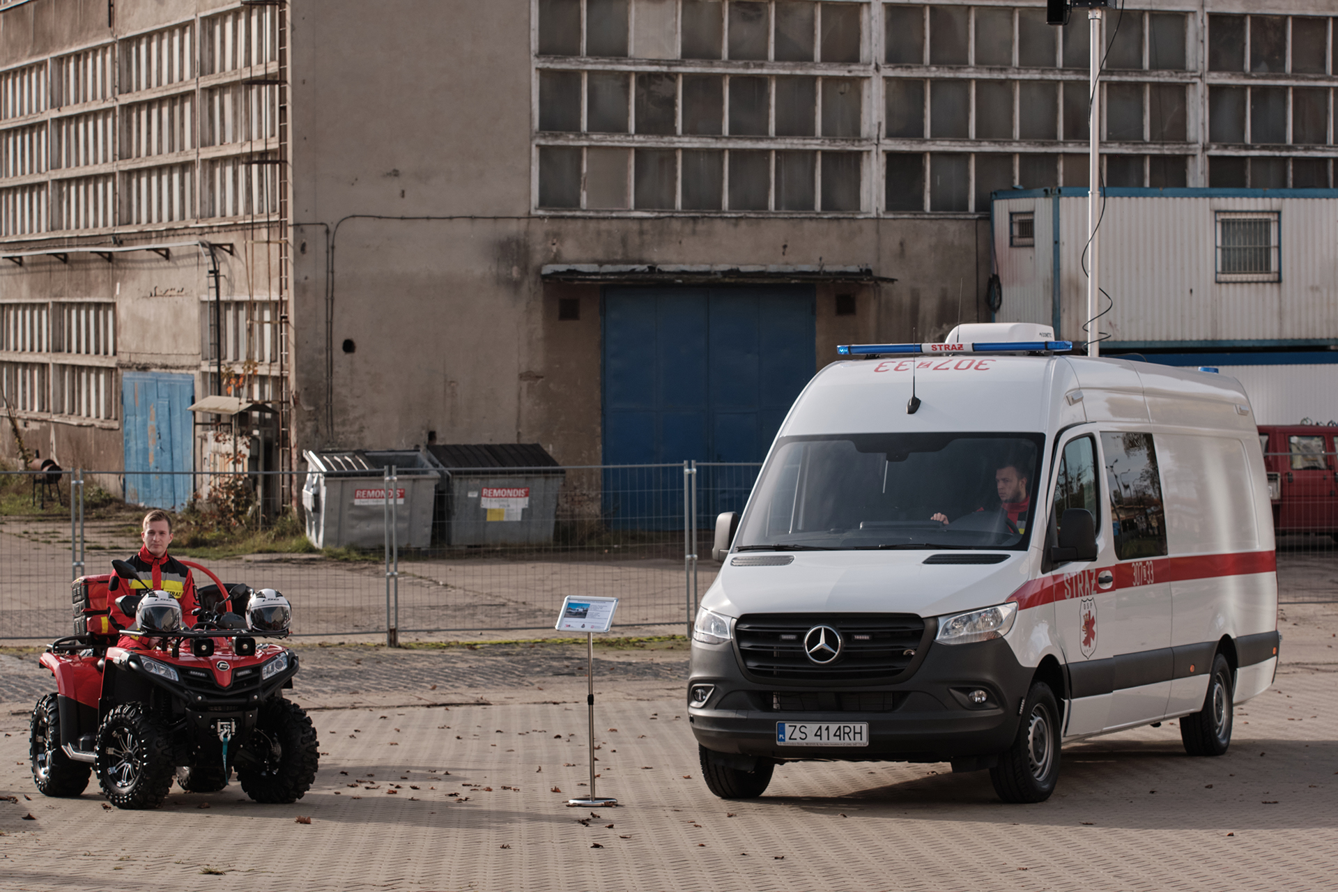 Nowy nabytek OSP Gryf ze Szczecina to SLMed na podwoziu Mercedes Sprinter z funkcją auta sztabowego oraz Quada ratowniczego CF Moto wraz z dwoma przyczepkami. Na pokładzie tego samochodu można znaleźć min. taki sprzęt jak :