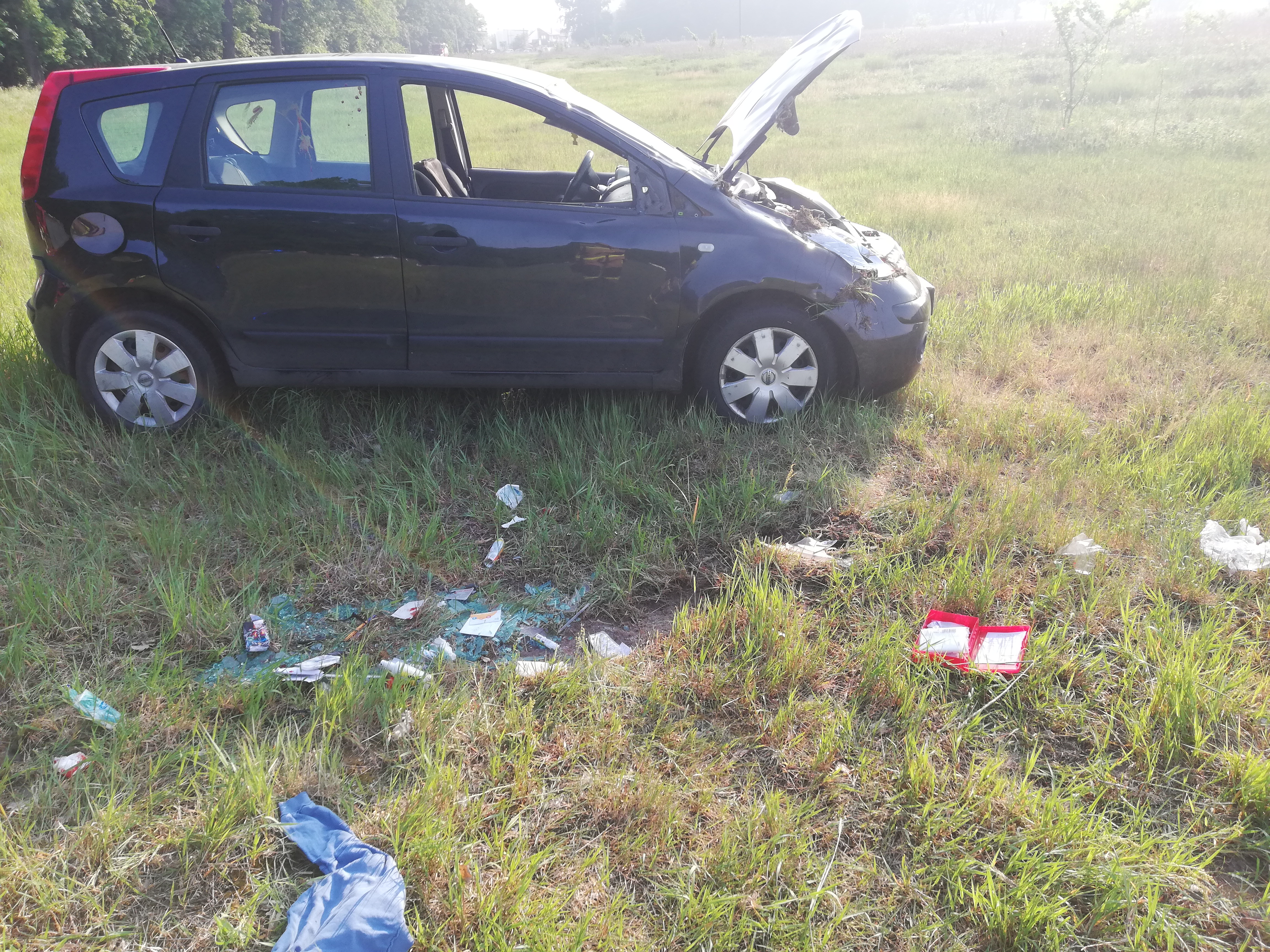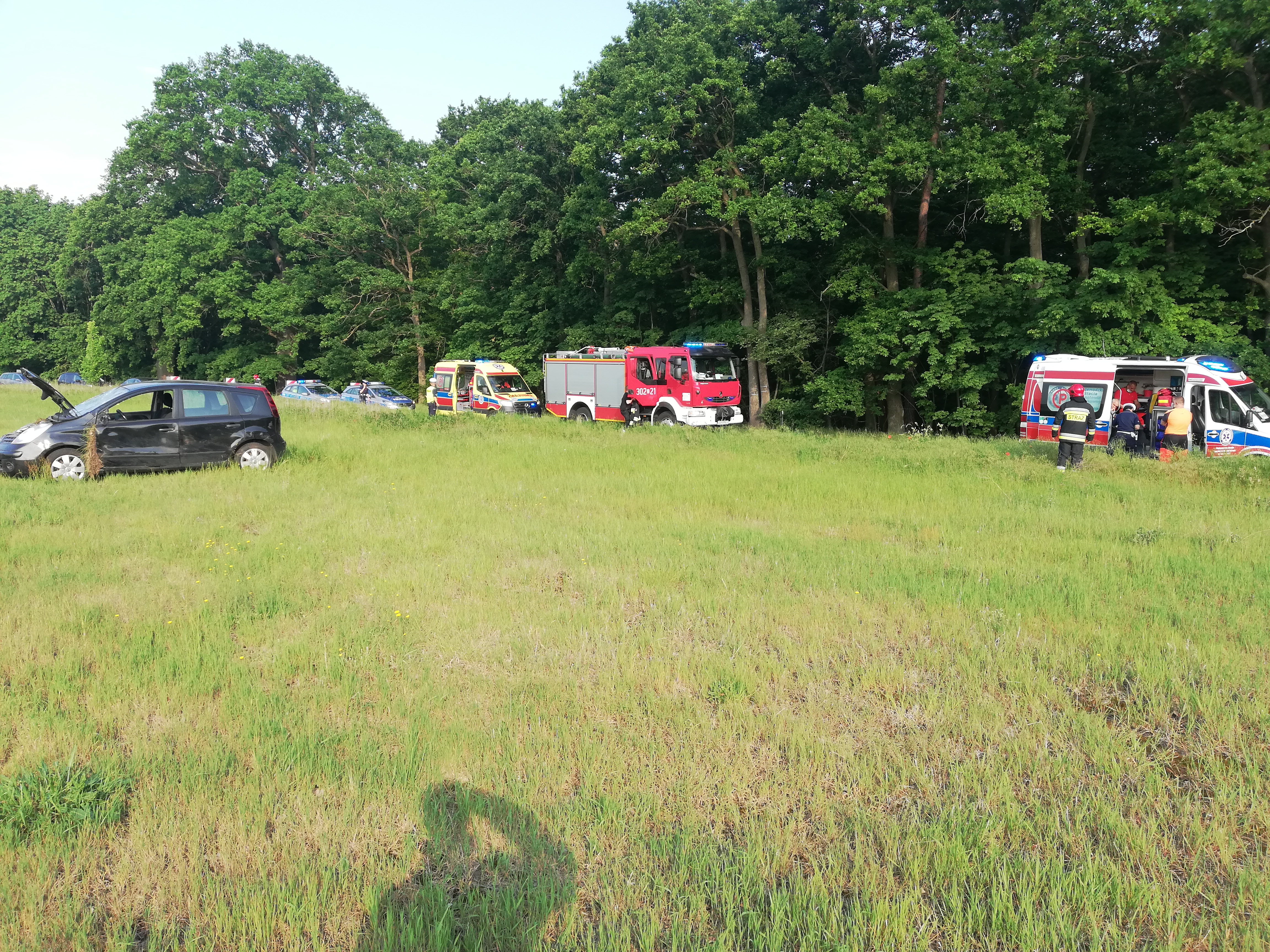 Po przybyciu zastępów na miejsce zdarzenia zastano pojazd osobowy na poboczu drogi. Pojazdem podróżowały dwie osoby, które samodzielnie opuściły pojazd. Działania zastępów polegały na zabezpieczeniu miejsca zdarzenia, odłączeniu akumulatora oraz udzieleniu poszkodowanym kwalifikowanej pierwszej pomocy. Poszkodowani zostali przetransportowani do szczecińskich szpitali w celu dalszej diagnostyki.