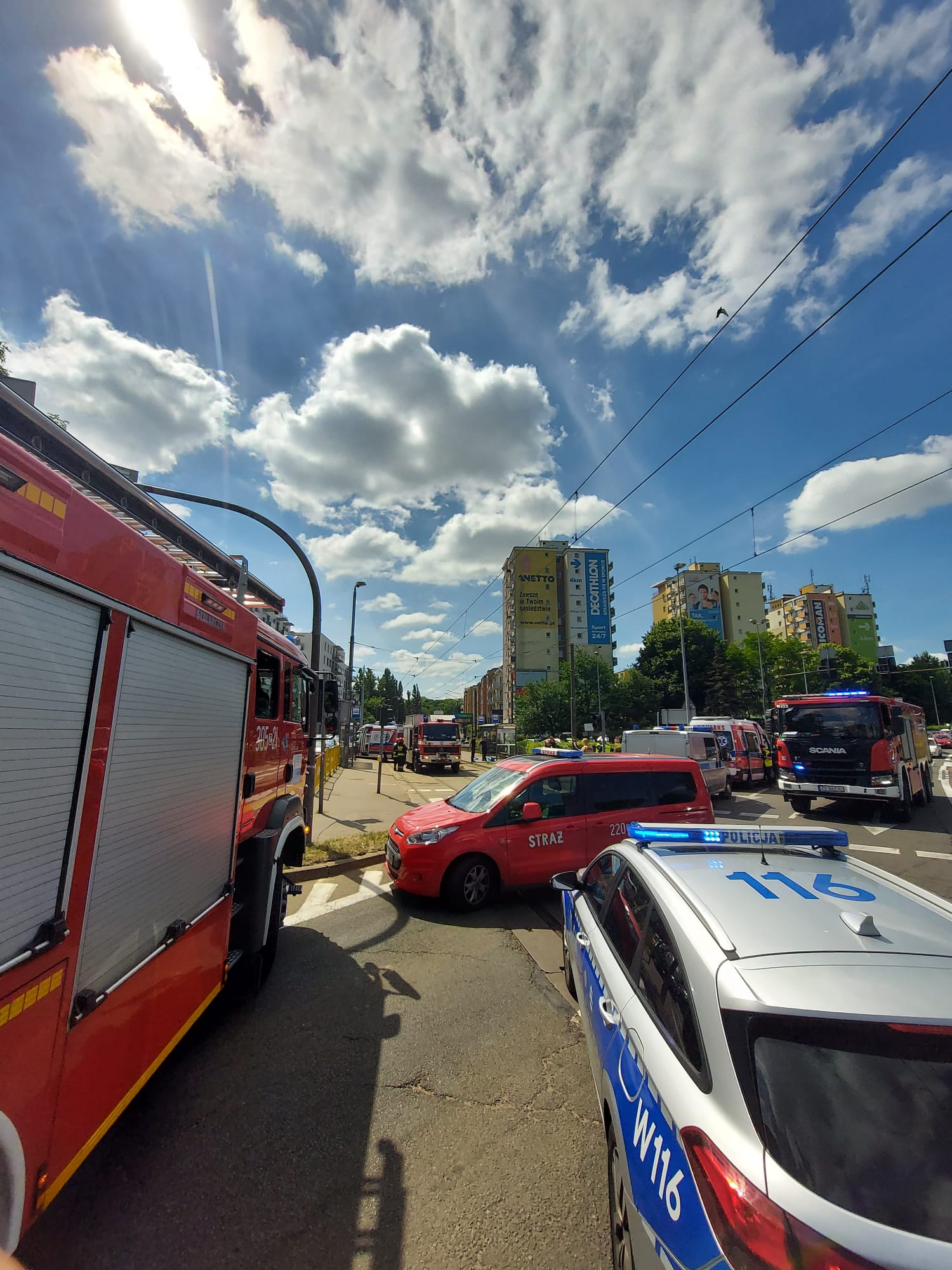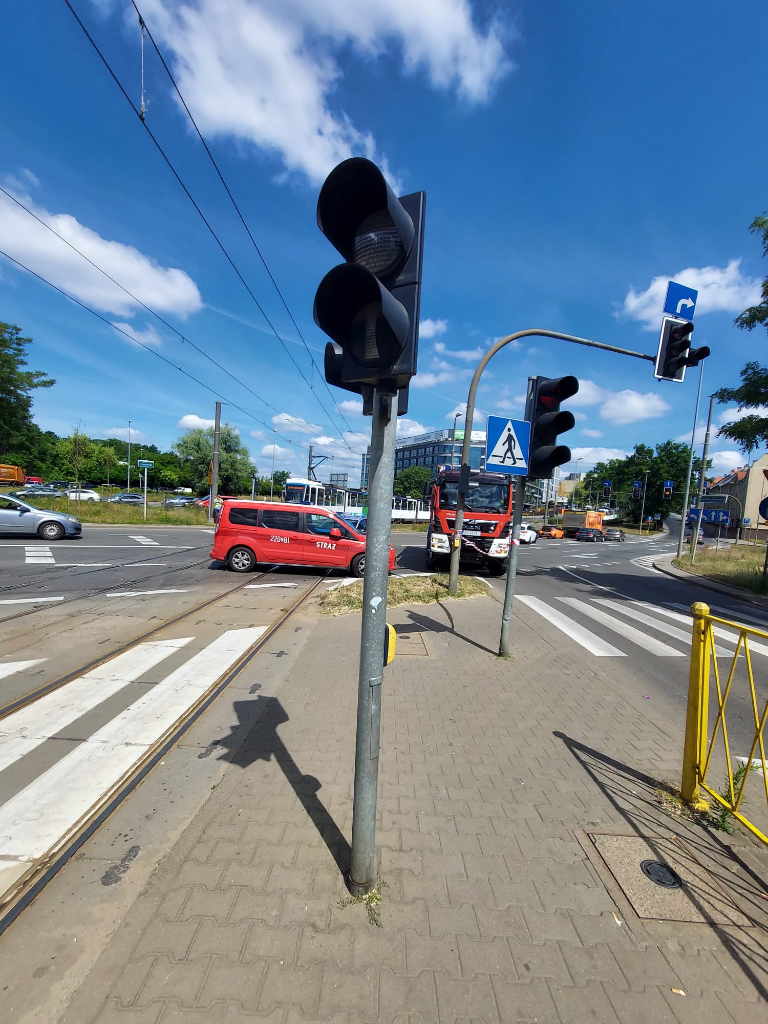 W dniu 17 czerwca 2022r. około godz. 10:54 do stanowiska kierowania Komenda Miejskiego Państwowej Straży Pożarnej w Szczecinie wpłynęło zgłoszenie o wypadku drogowym na placu Szyrockiego.