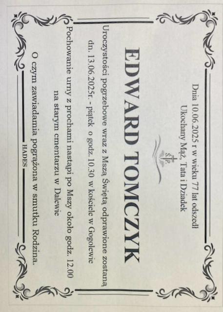 świętej pamięci młodszego ogniomistrza w stanie spoczynku Edwarda Tomczyka,