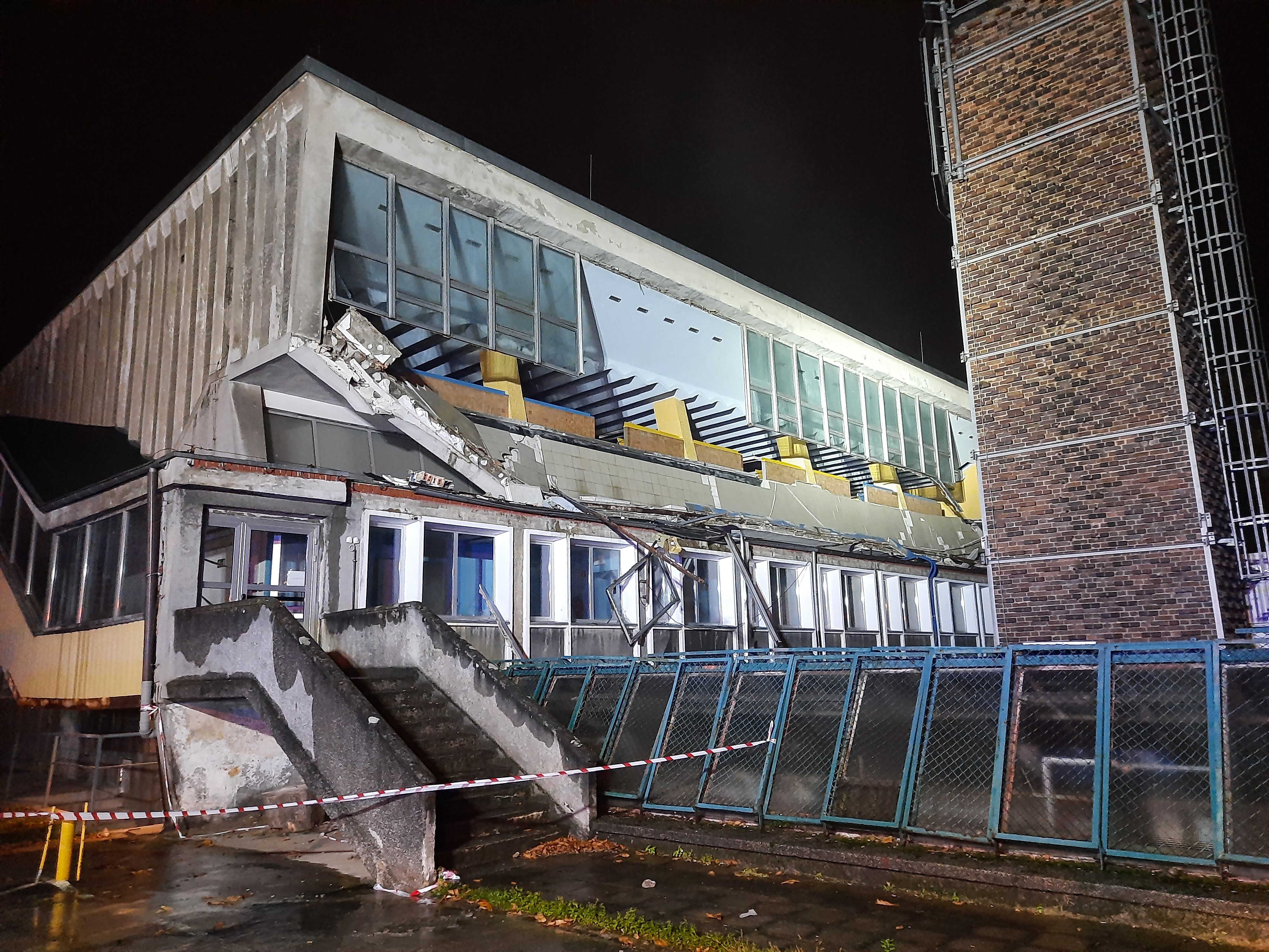 1 listopada 2021 r. o godz. 21:43 do Stanowiska Kierowania Komendanta Miejskiego Państwowej Straży Pożarnej w Szczecinie wpłynęło zgłoszenie o zawaleniu ściany budynku basenu sportowego przy ulicy Wąskiej. Po przybyciu na miejsce zdarzenia stwierdzono zawalenie jednej ze ścian wraz z częścią dla widowni. Działania PSP polegały na zabezpieczeniu, przeszukaniu terenu akcji oraz odłączeniu dopływu mediów. Nie stwierdzono przebywania osób postronnych. Podczas prowadzonych działań na miejsce przybył pracownik Nadzoru Budowlanego, celem określenia stabilności budynku, a także przedstawiciel Urzędu Miasta Szczecin.