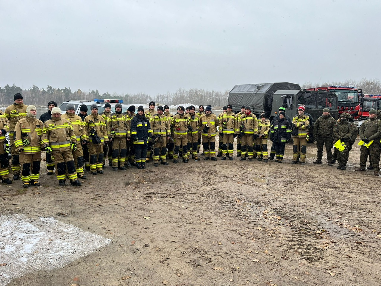 W ćwiczeniach wzięło udział ponad 100 osób, w tym 35 strażaków PSP, 39 strażaków OSP oraz 17 żołnierzy WOT, 9 funkcjonariuszy Policji oraz 2 ratowników PRM.