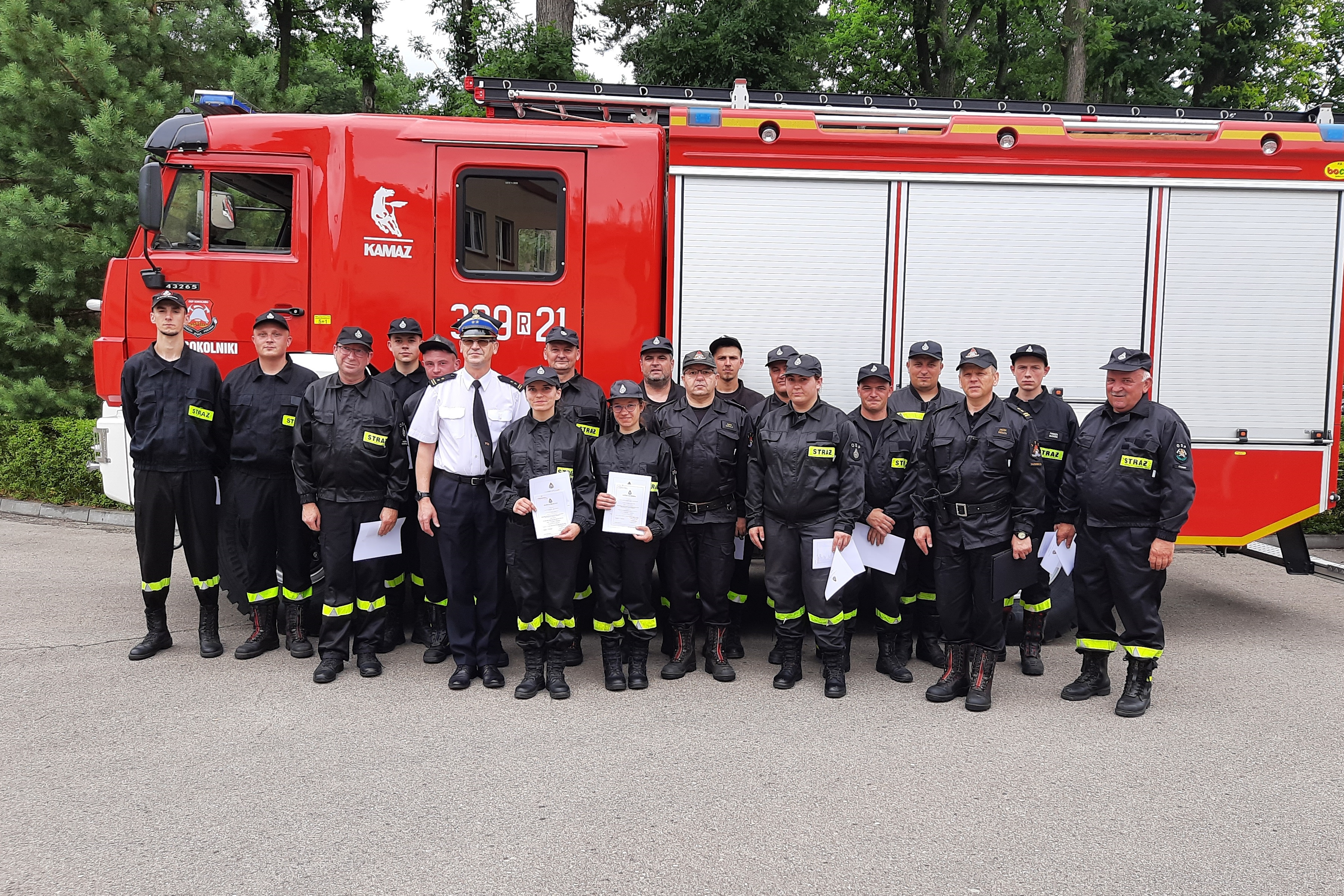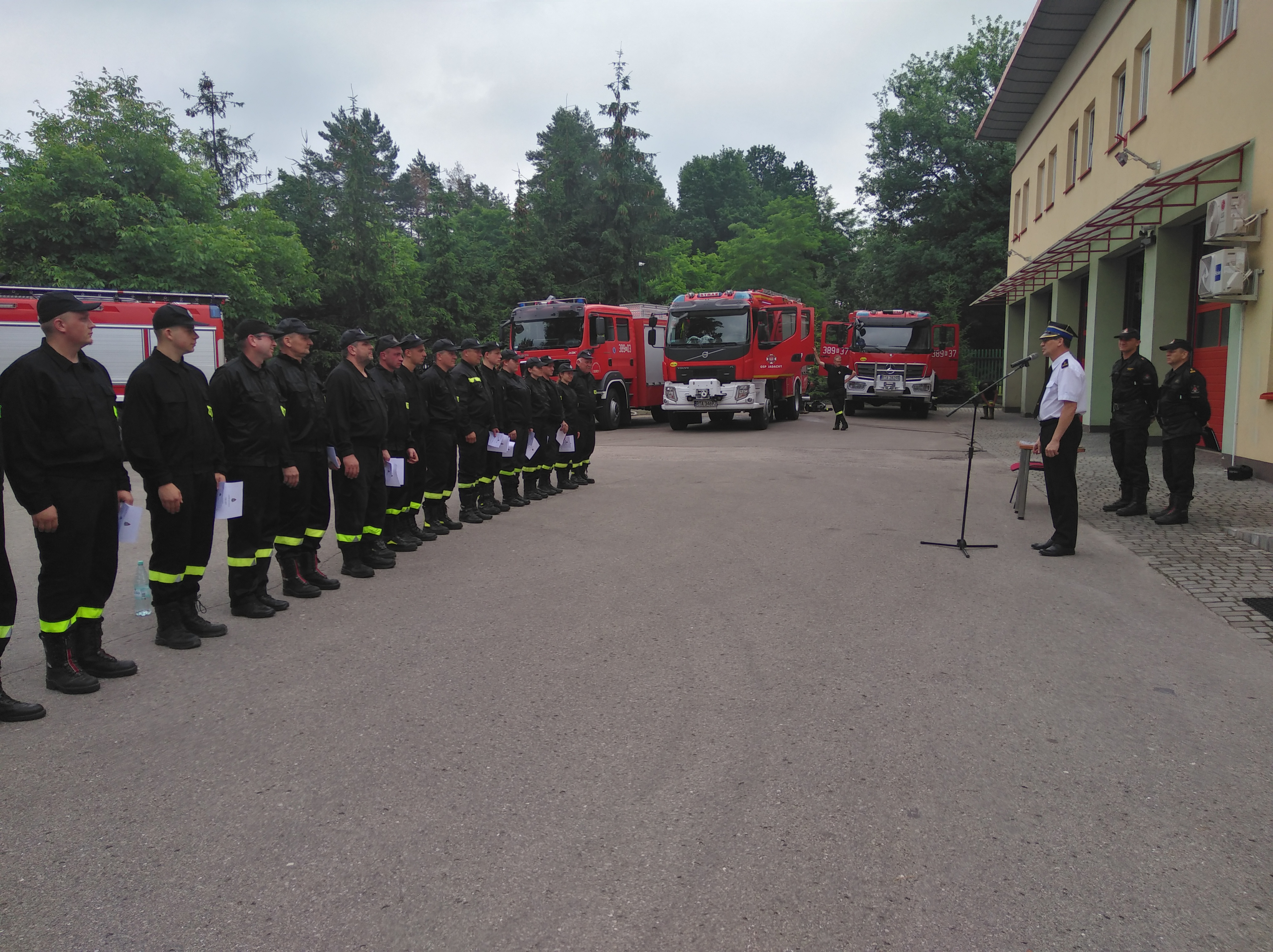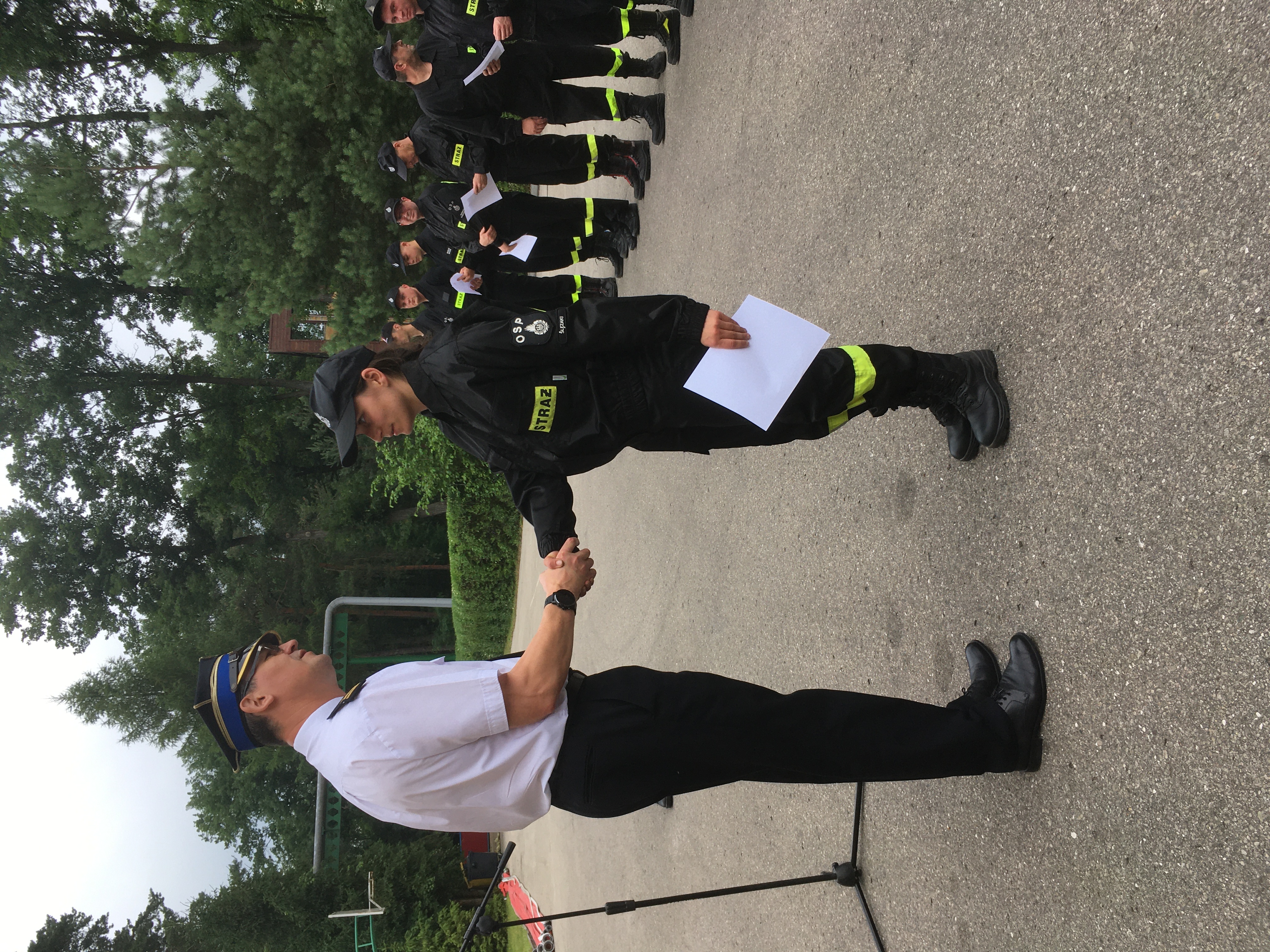 Egzamin obserwował Komendant Miejski PSP w Tarnobrzegu bryg. Marian Róg, który na zakończenie szkolenia pogratulował strażakom oraz wręczył zaświadczenia o ukończeniu szkolenia.