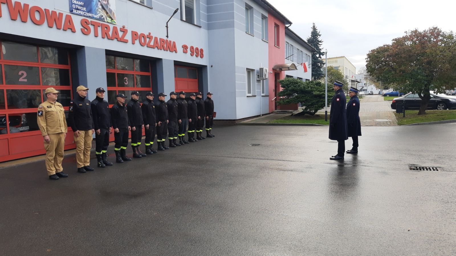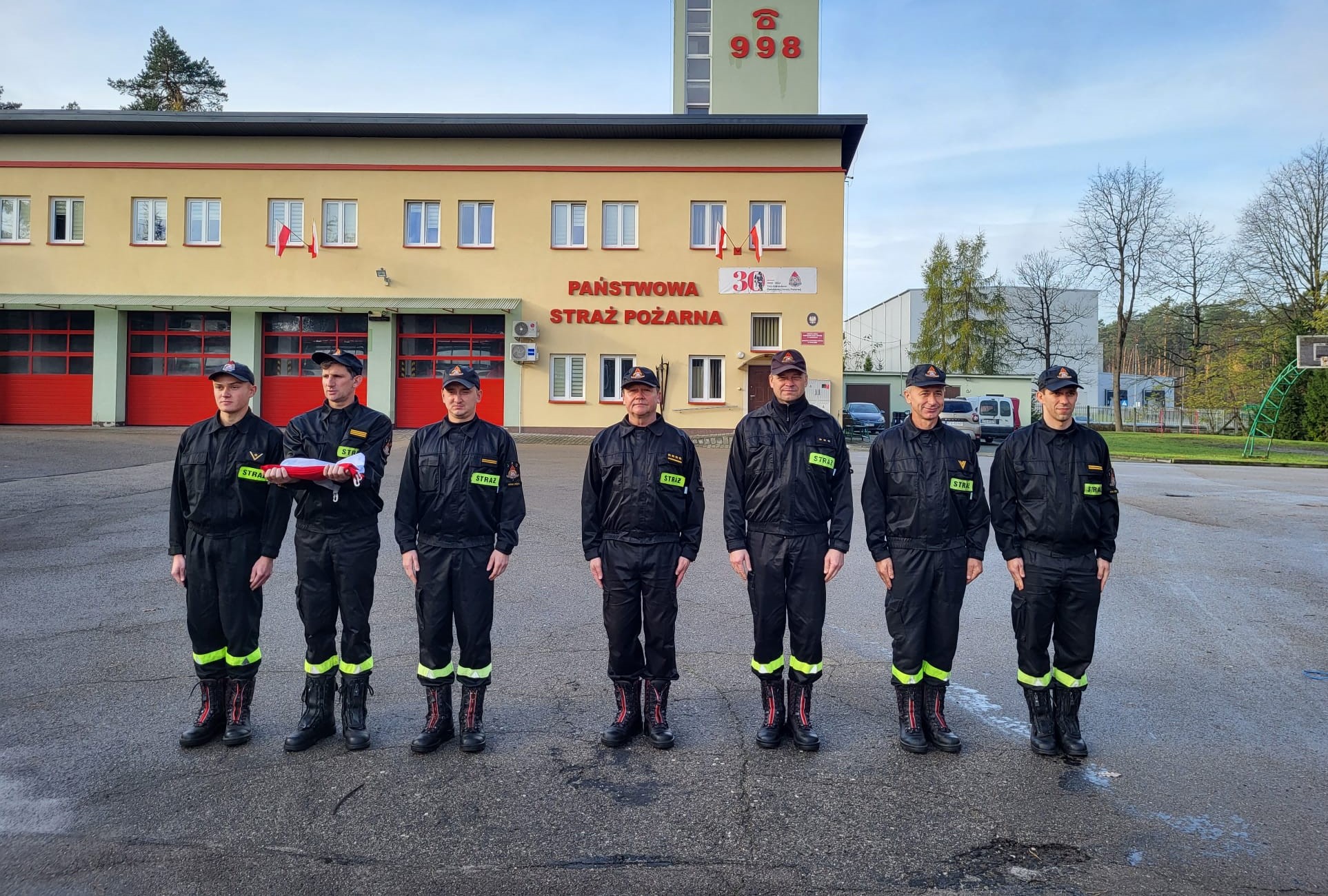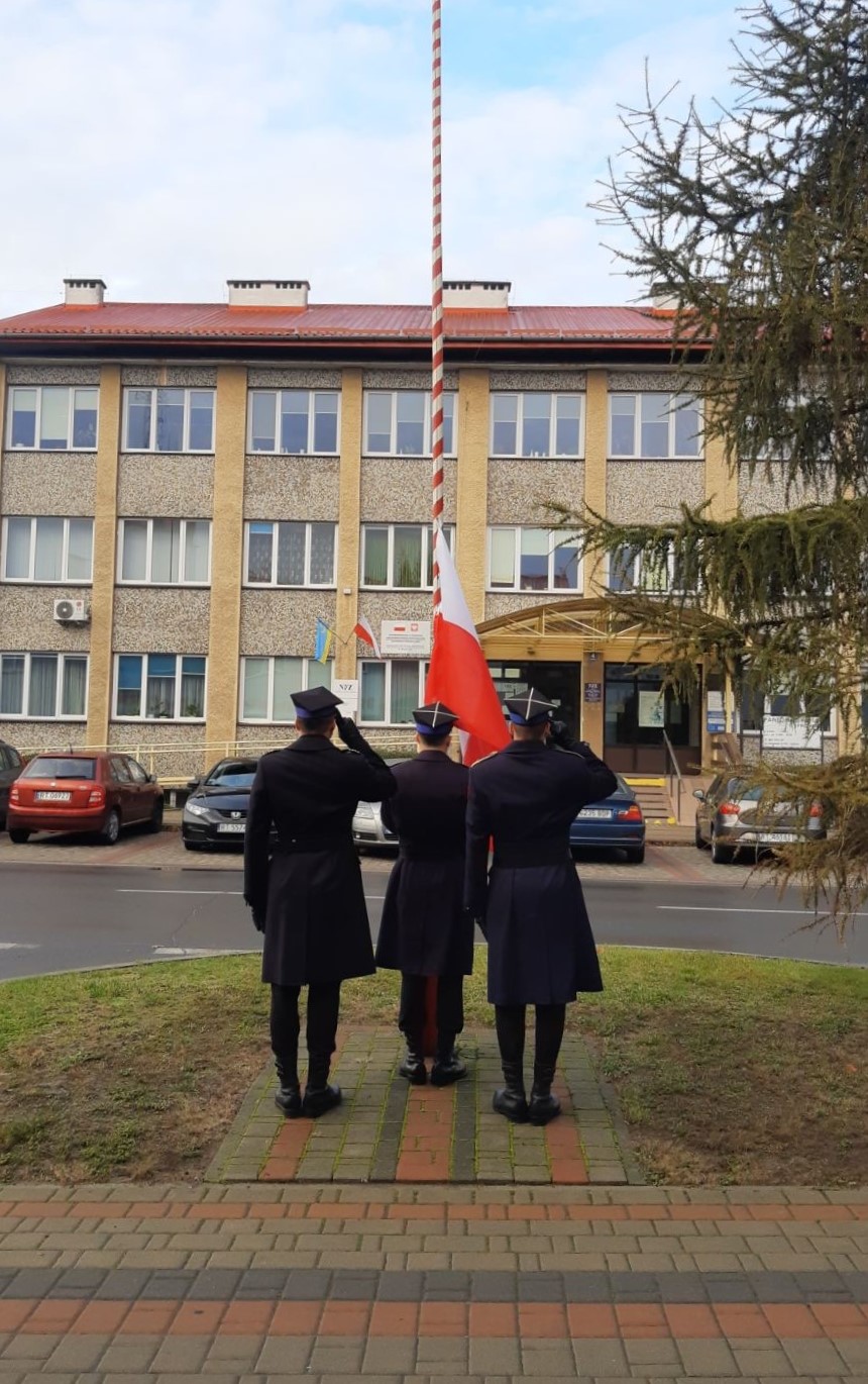 Przed budynkami KM PSP w Tarnobrzegu i Nowej Dębie odbyły się uroczyste zbiórki, podczas których wciągnięto na maszt Flagę Państwową oraz odegrano Hymn Rzeczypospolitej Polskiej.