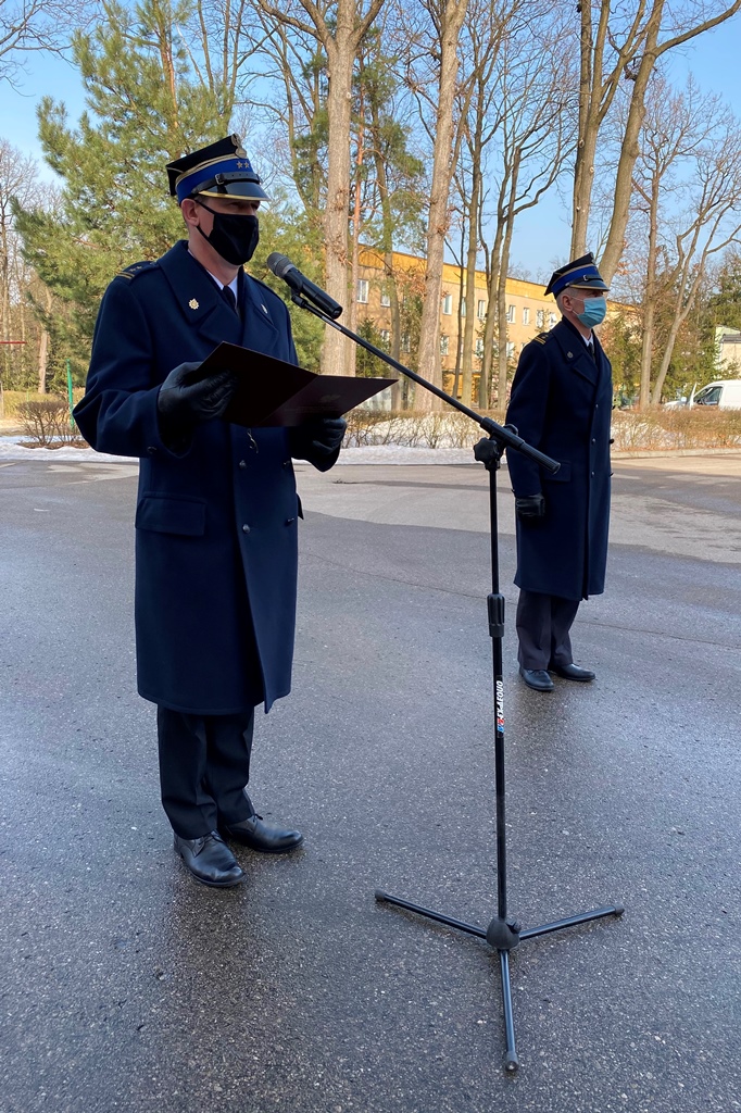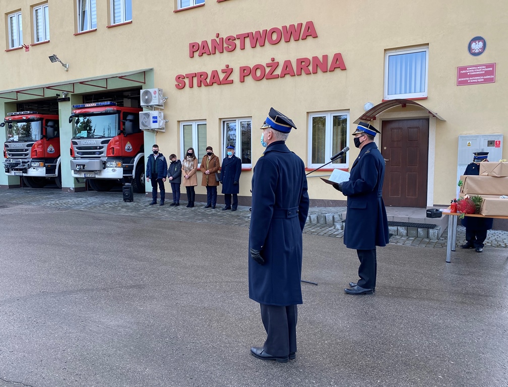 Komendant Miejski PSP w Tarnobrzegu bryg. Marian Róg przedstawił karierę ratowniczą żegnającego się ze służbą asp. sztab. Mariusza Zięby. Zwracając się do kolegi Mariusza oraz osób uczestniczących w uroczystej zbiórce, wyraził słowa uznania i podziękowania za wieloletnią służbę oraz wzorową realizację zadań ratowniczych. Komendant złożył również życzenia zdrowia i wszelkiej pomyślności w realizacji nowych planów i pasji życiowych podczas emerytalnego wypoczynku. Na pamiątkę wzorowej służby strażak otrzymał pamiątkową fotografię oraz okolicznościowe upominki.