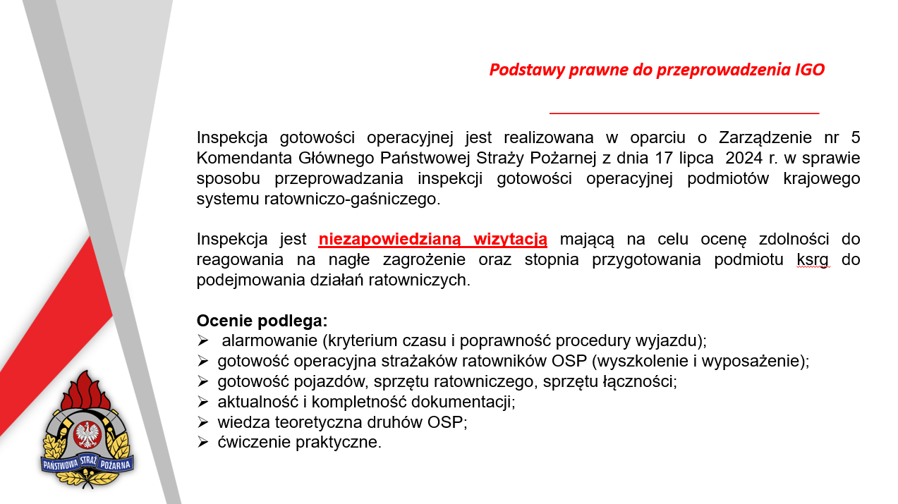 - Inspekcje gotowości operacyjnej jednostek OSP w ksrg – st. kpt. Norbert Strojnowski.