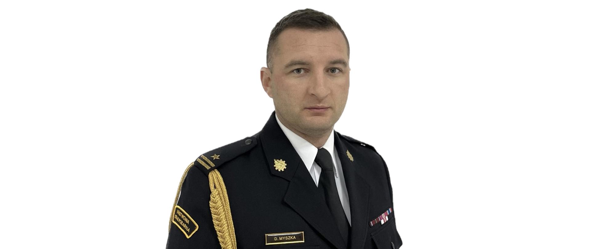 Brygadier Daniel Myszka służbę w Państwowej Straży Pożarnej pełni od września 2006 roku. W latach 2006-2008 był kadetem w Centralnej Szkole PSP w Częstochowie. Od 2008 roku pełni służbę w Komendzie Miejskiej PSP w Tarnobrzegu, gdzie zajmował kolejno wyższe stanowiska służbowe, począwszy od starszego ratownika, dowódcy zastępu i pełniącego obowiązki dyżurnego operacyjnego powiatu. W 2016 roku został mianowany na stanowisko zastępcy dowódcy Jednostki Ratowniczo-Gaśniczej w Tarnobrzegu. Podnosząc swoje kwalifikacje zawodowe ukończył studia na Wydziale Inżynierii Bezpieczeństwa Pożarowego w Szkole Głównej Służby Pożarniczej w Warszawie - I stopnia w 2012 roku, a następnie II stopnia w 2015 roku, uzyskując tytuł magistra inżyniera pożarnictwa. Od 1 lutego 2018 roku pełnił obowiązki zastępcy komendanta miejskiego PSP, od 1 lipca 2018 r., został powołany na stanowisko zastępcy komendanta miejskiego PSP w Tarnobrzegu, a w okresie od 18 lutego do 18 kwietnia 2023 roku pełnił obowiązki komendanta miejskiego PSP w Tarnobrzegu. W 2020 roku ukończył studia podyplomowe w Wyższej Szkole Biznesu i Nauk o Zdrowiu w Łodzi w zakresie bezpieczeństwa i higieny pracy.