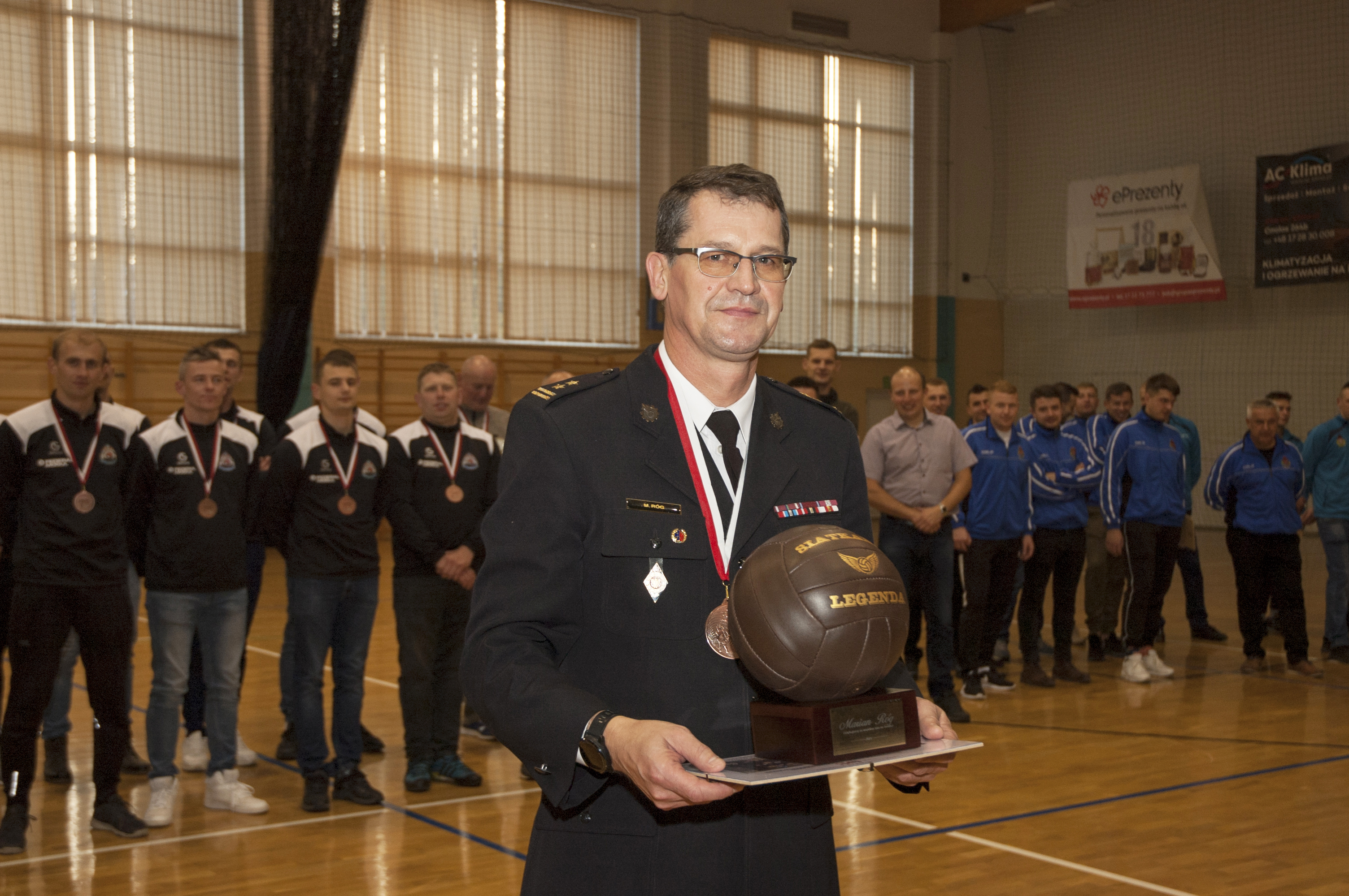 Miłym akcentem została zakończona kariera sportowa komendanta miejskiego PSP w Tarnobrzeg, który na jej uwieńczenie od swojej drużyny otrzymał statuetkę oraz pamiątkową fotografię. Upominek wręczył podkarpacki komendant wojewódzki PSP nadbryg. Andrzej Babiec wraz z zastępcą komendanta miejskiego PSP w Tarnobrzegu st. kpt. Danielem Myszką.