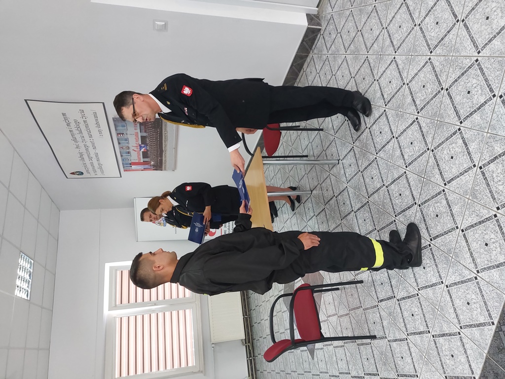 Komendant zwracając się do nowoprzyjętych funkcjonariuszy podkreślił znaczenie tej chwili w życiu zawodowym każdego strażaka, jednocześnie życzył powodzenia i sukcesów w służbie.