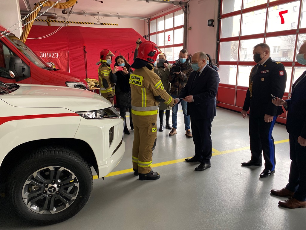 Na wyposażenie KM PSP w Tarnobrzegu trafiły dwa nowe pojazdy, w tym lekki samochód rozpoznawczo-ratowniczy Mitsubihi L200 zakupiony za kwotę 154 000 zł oraz lekki samochód zaopatrzeniowy Renault Master zakupiony za kwotę 159 700 zł. Zakup lekkiego samochód rozpoznawczo-ratowniczego został sfinansowany w ramach środków pochodzących z funduszu przeciwdziałania COVID-19 Komendy Wojewódzkiej PSP w Rzeszowie – 54 000 zł, środków Urzędu Miasta Tarnobrzega – 50 000 zł oraz środków Starostwa Powiatowego w Tarnobrzegu – 50 000 zł. Lekki samochód zaopatrzeniowy zakupiony został w całości ze środków funduszu przeciwdziałania COVID-19 KW PSP w Rzeszowie. Komenda Miejska PSP w Tarnobrzegu doposażona została również w namiot pneumatyczny wraz ze sprężarką, 7 kompletów ubrań specjalnych, 2 myjki ciśnieniowe oraz 6 masek ochrony dróg oddechowych.