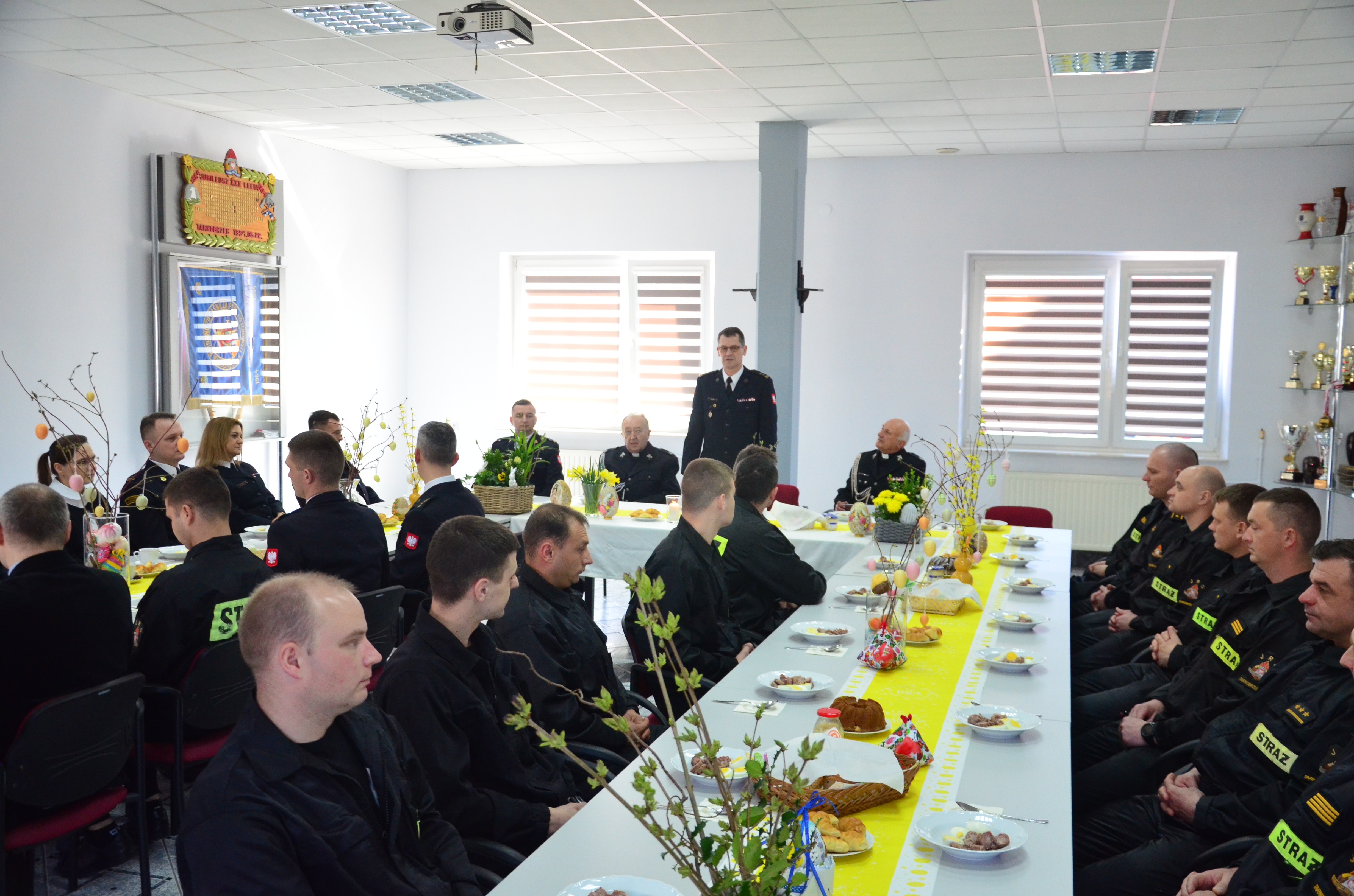 Spotkanie rozpoczął komendant miejski PSP w Tarnobrzegu bryg. Marian Róg, który u progu Świąt Wielkanocnych złożył wszystkim zgromadzonym życzenia. Do zgromadzonych zwrócił się również ksiądz kapelan Andrzej Machowicz, który wygłoszonym słowem oraz modlitwą wprowadził wszystkich w świąteczny okres. Ksiądz kapelan przewodniczył również modlitwie, podczas której zostały pobłogosławione pokarmy zgromadzone na świątecznym stole. Wśród potraw znalazły się tradycyjne, smaczne dania świąteczne, w tym między innymi barszcz biały oraz babka wielkanocna.