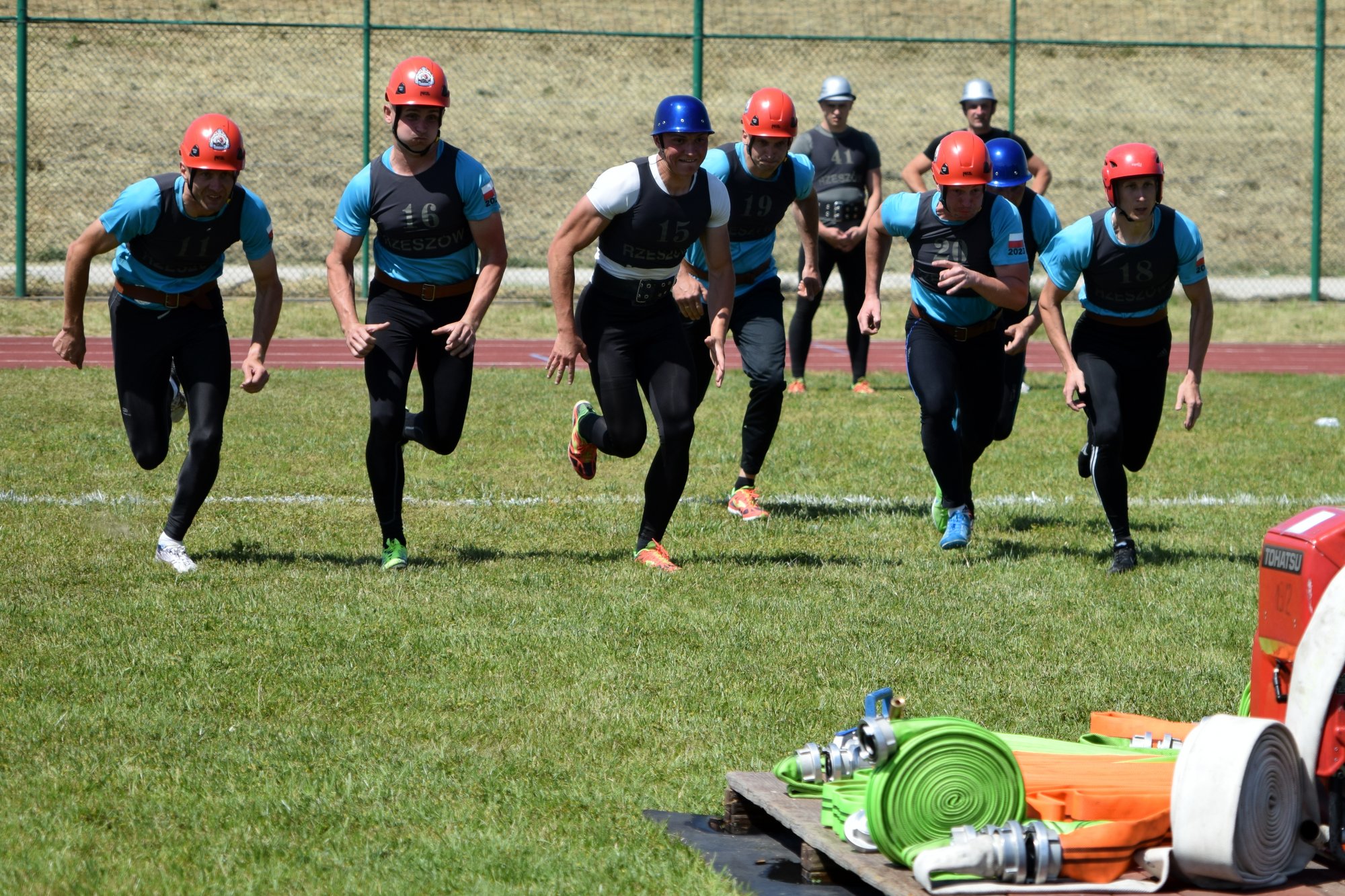 W pierwszym dniu mistrzostw na obiektach sportowych Jednostki Ratowniczo-Gaśniczej nr 3 w Rzeszowie strażacy rywalizowali w konkurencjach indywidualnych, tj. wspinania przy użyciu drabiny hakowej oraz pożarniczego toru przeszkód 100 m.