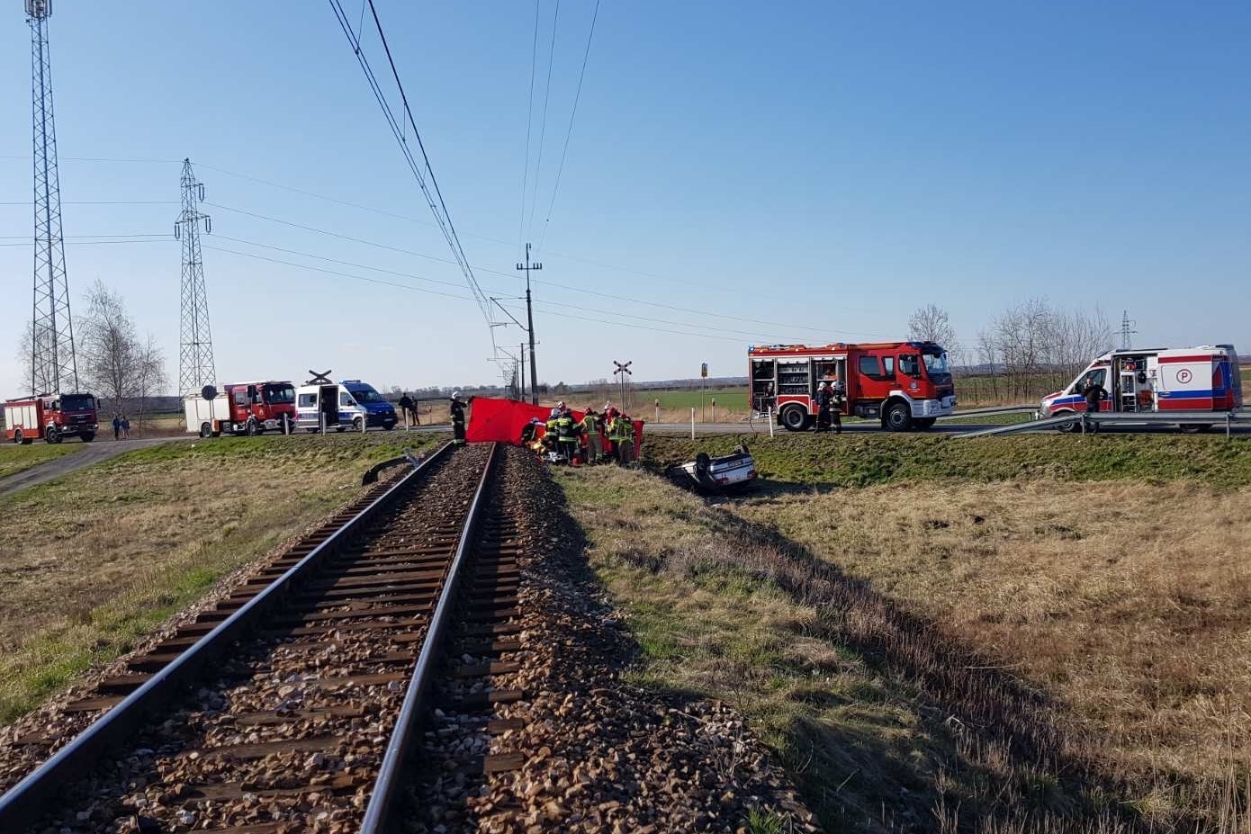 Zderzenie samochodu osobowego z pociągiem technicznym w Tarnobrzegu
