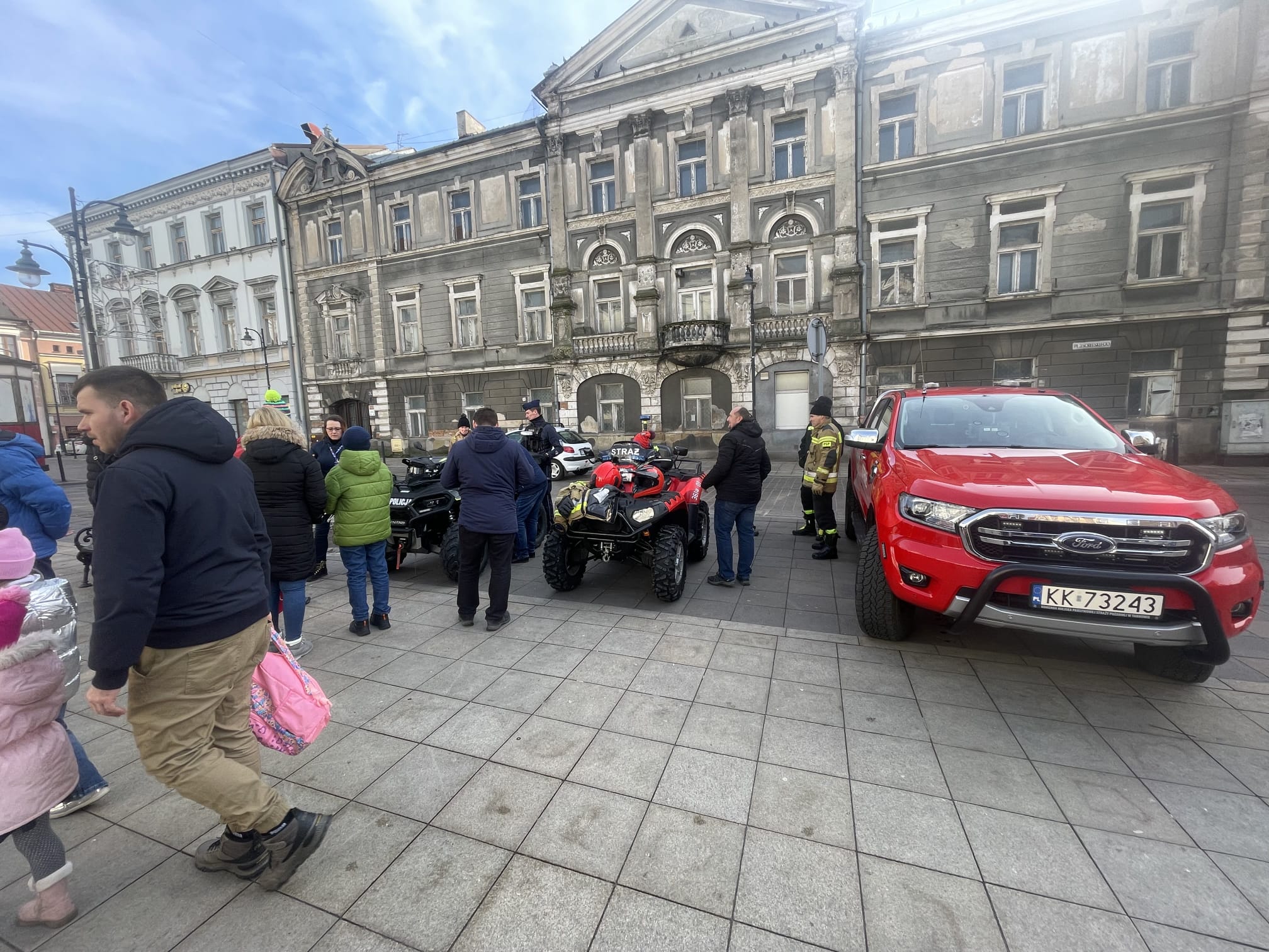z WOŚP w okolicach tarnowskiego rynku. Chętni mogli obejrzeć sprzęt jakim dysponujemy, porozmawiać o strażackiej służbie, a najmłodsi fani pożarnictwa mieli możliwość usiąść w samochodzie pożarniczym czy łodzi ratowniczej. W ramach tegorocznego finału został również zorganizowany turniej halowej piłki nożnej Winter Beef Cup, w którym uczestniczyli strażacy naszej Komendy.