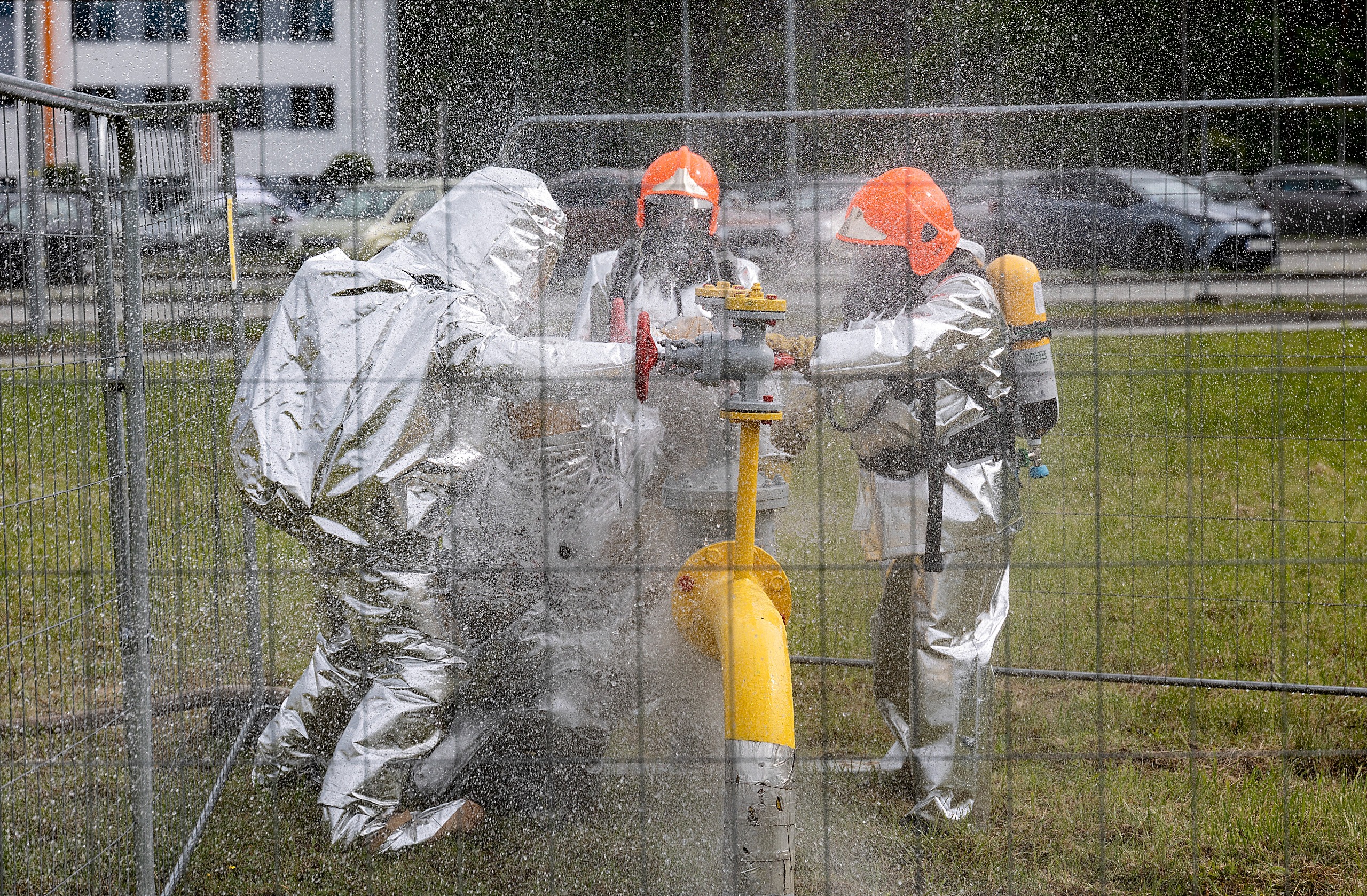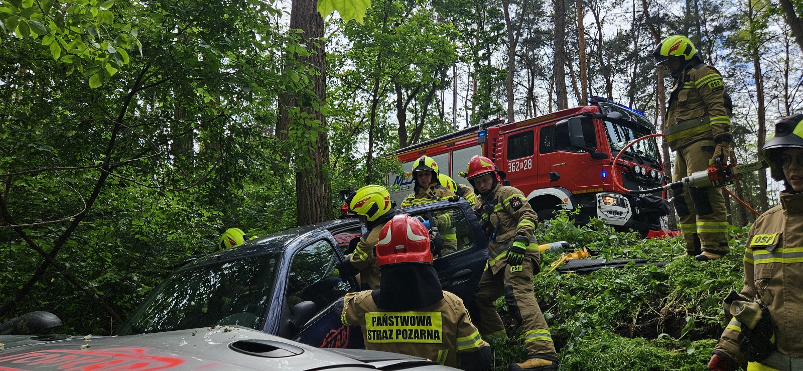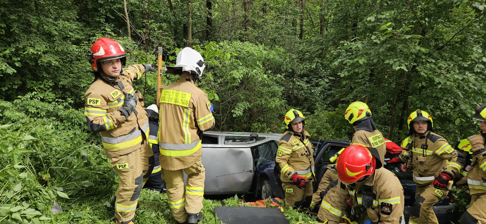 z użyciem drona, podejrzanego ładunku na biurze podawczym zakładu oraz pożaru instalacji technologicznej i w następstwie pożaru lasu. Równolegle w pobliskim lesie na drodze dojazdowej do zakładu doszło do symulowanego wypadku drogowego.