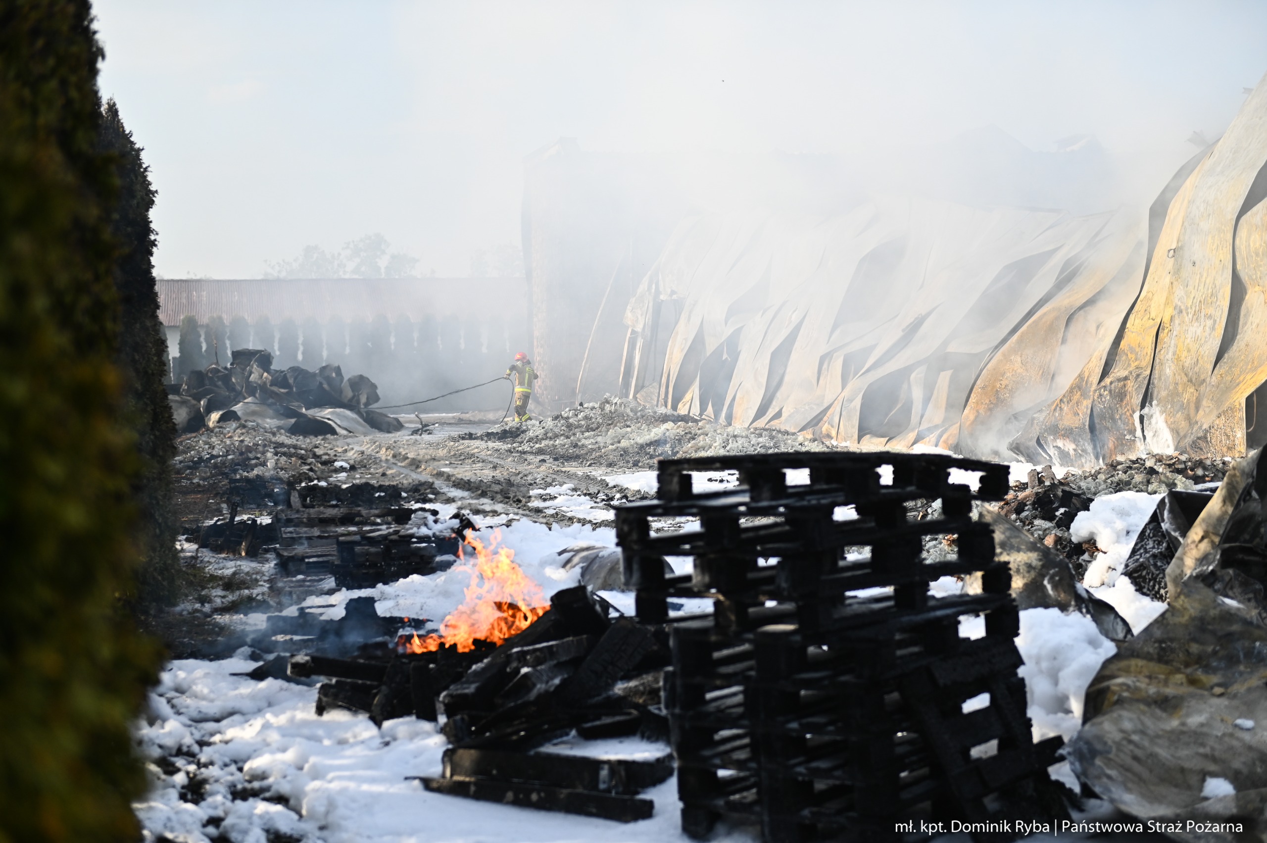 Pożar został opanowany po ok. 4 godzinach od zgłoszenia. Działania gaśnicze, dogaszanie i prace rozbiórkowe trwały łącznie 29 godzin.