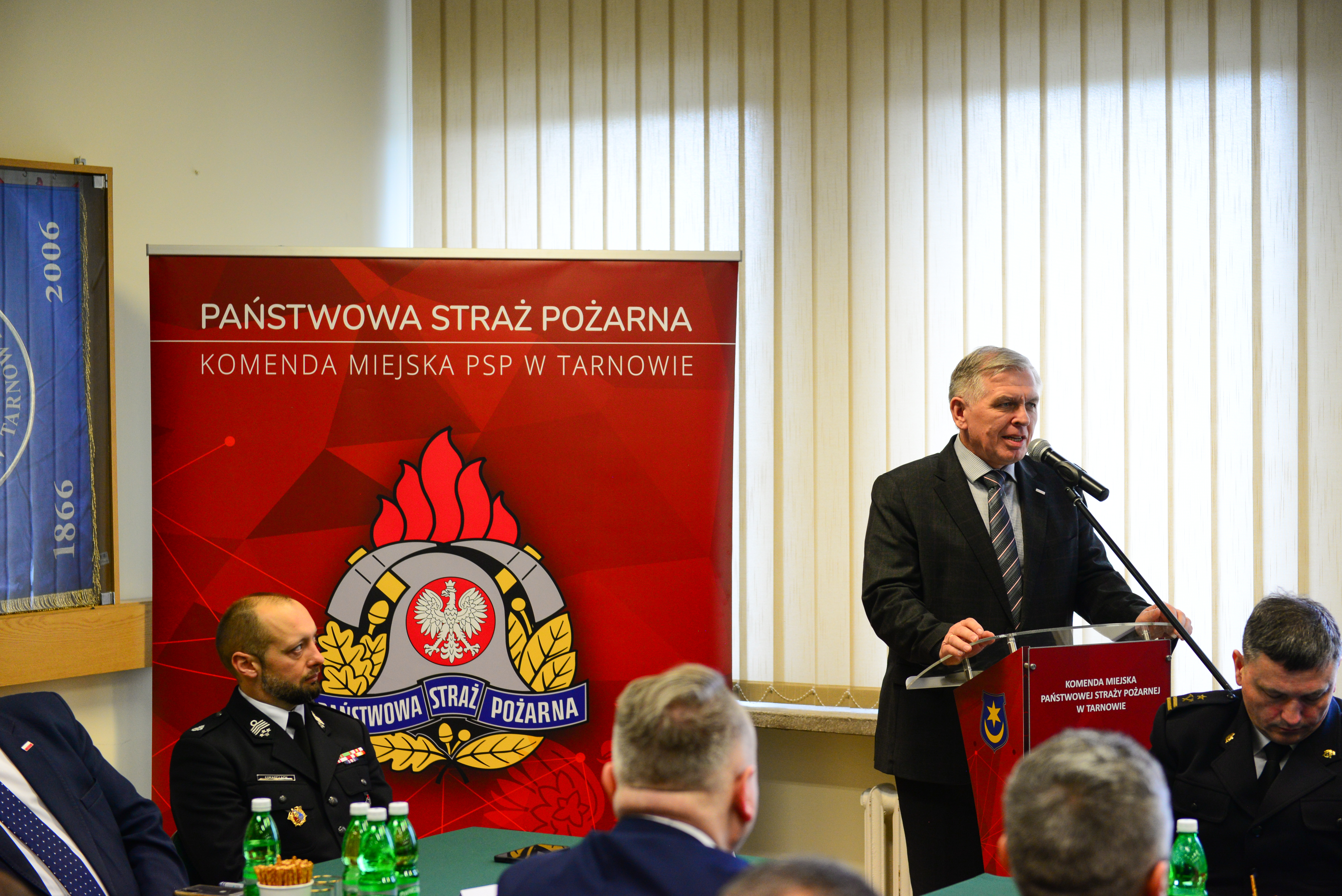 Podczas narady Komendant Miejski PSP w Tarnowie podziękował również za wspieranie inicjatyw i pomoc w realizacji zadań oraz zaplanowanych przedsięwzięć.